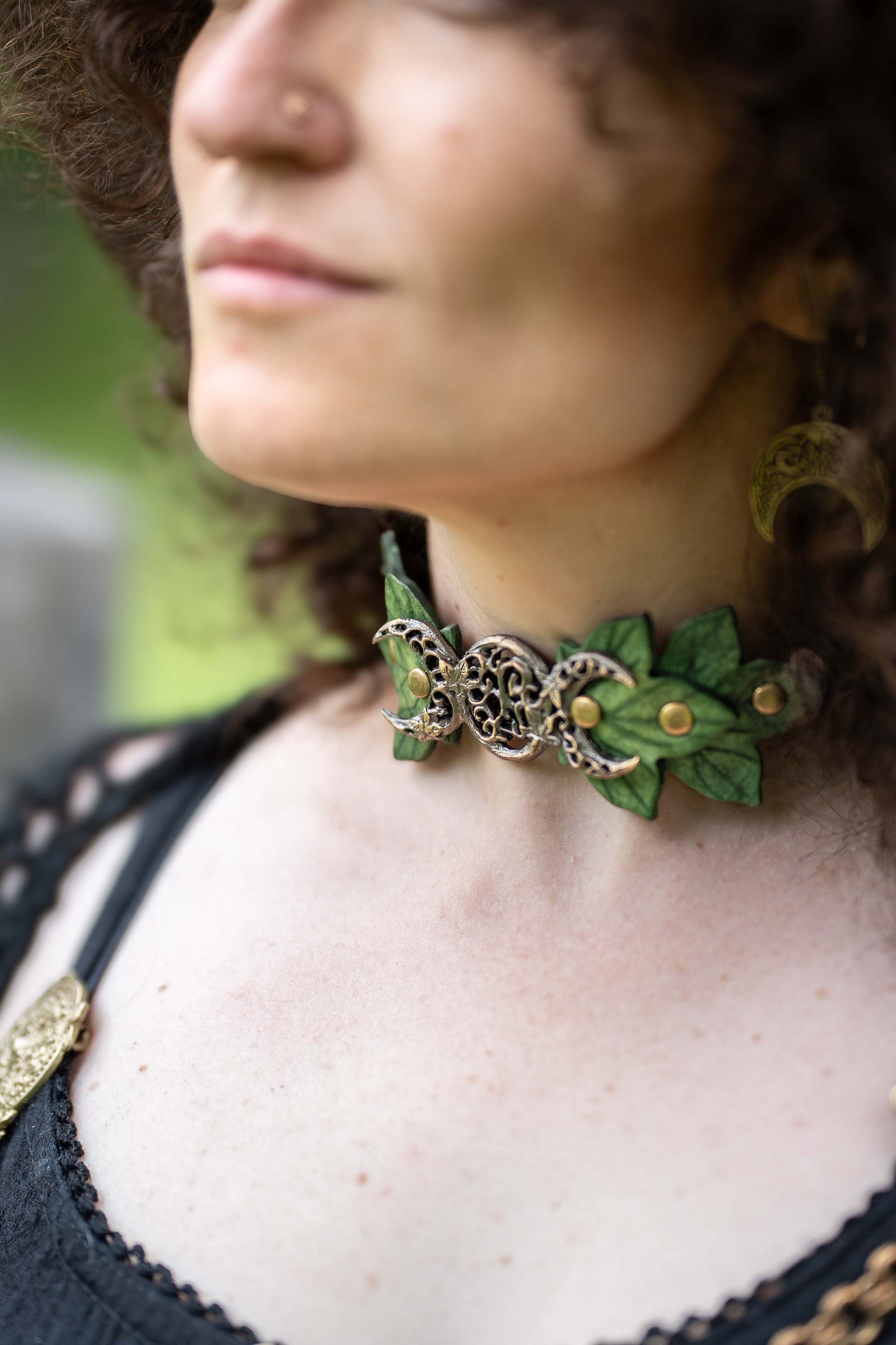 Feeling a little wicked? Feel the power of Hecate, the Mother, Maiden and Crone with this triple Moon choker necklace. It goes beautifully with witchy or dark academia looks, adding poise and power to your wardrobe.