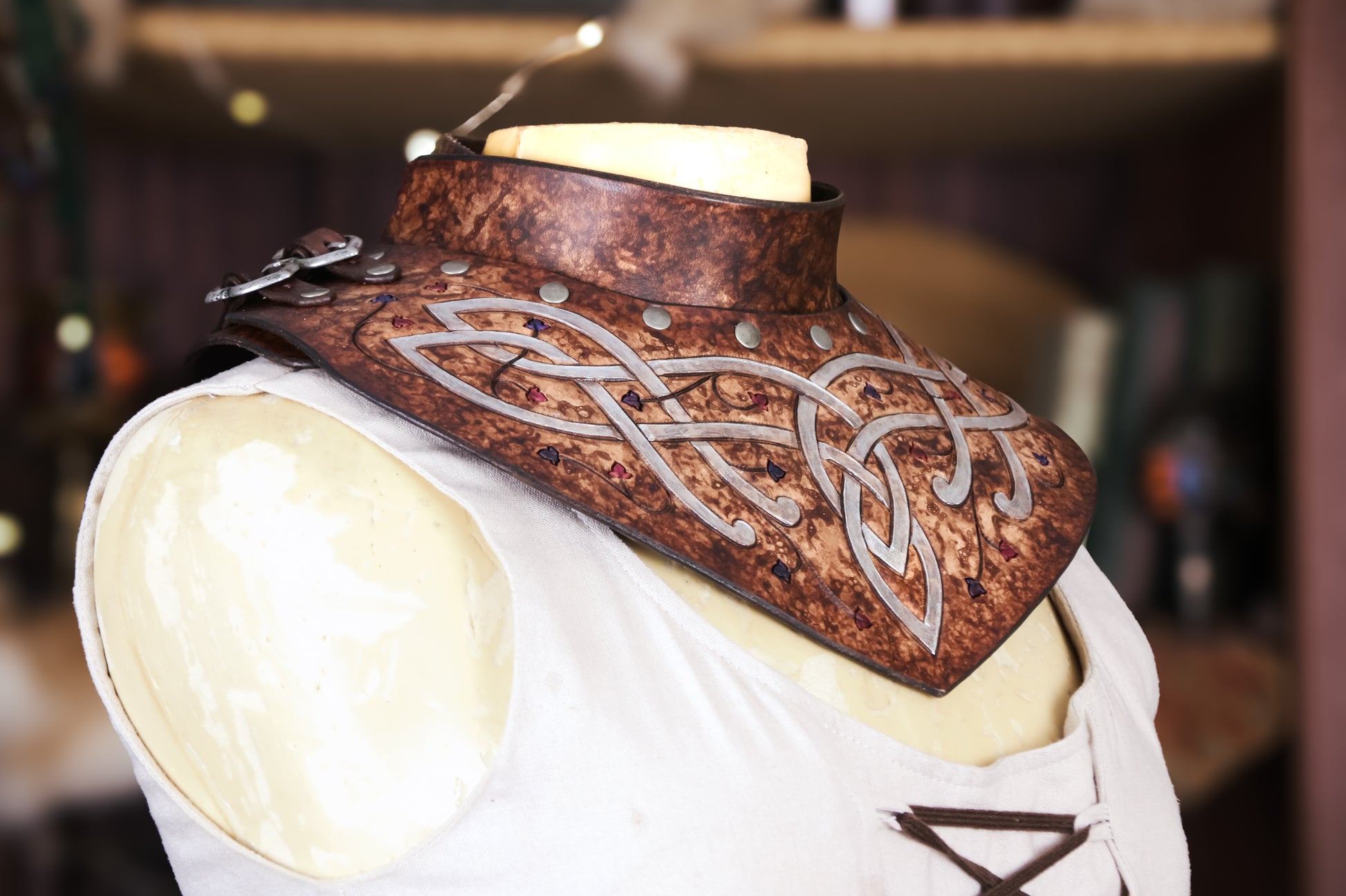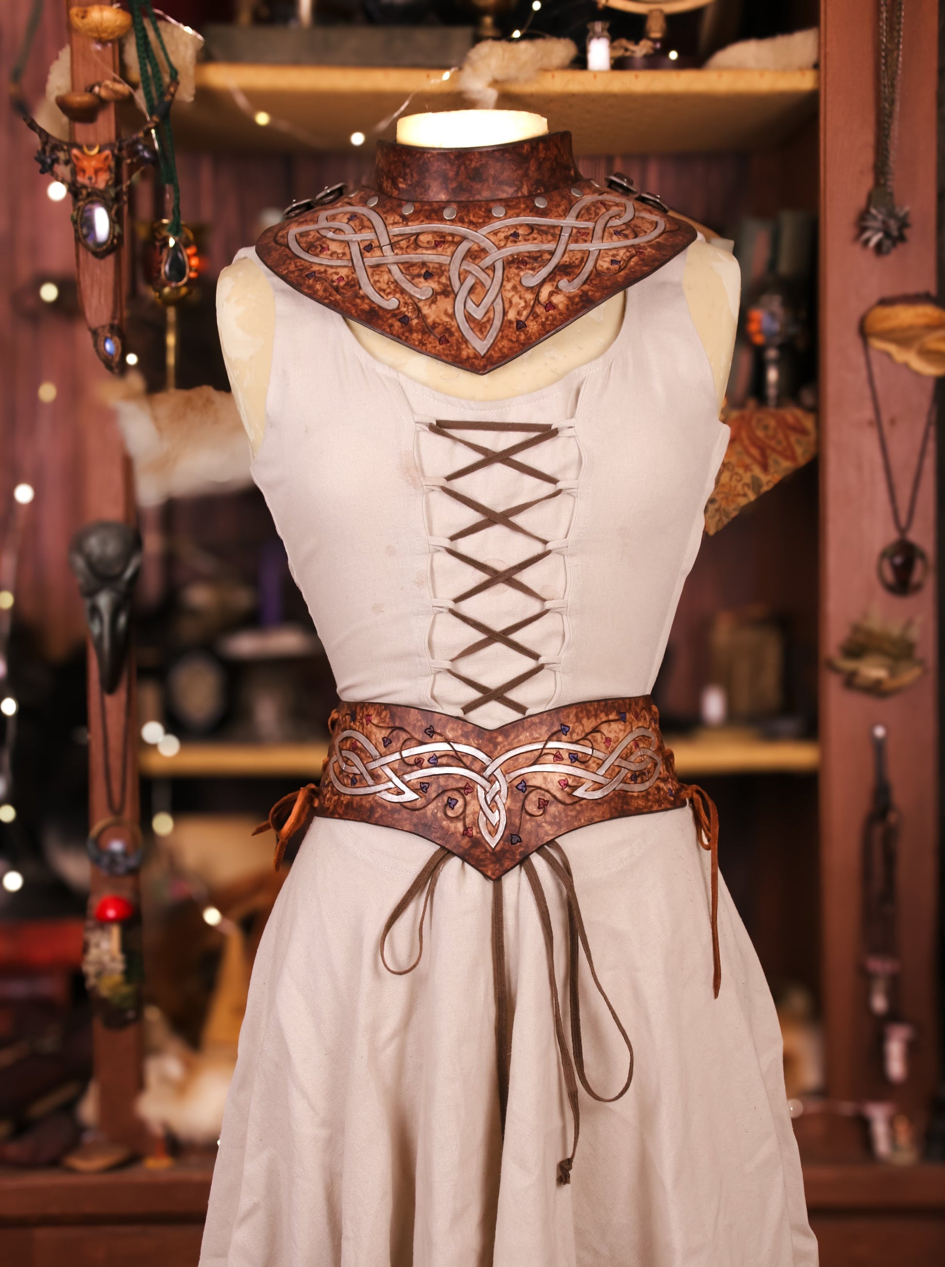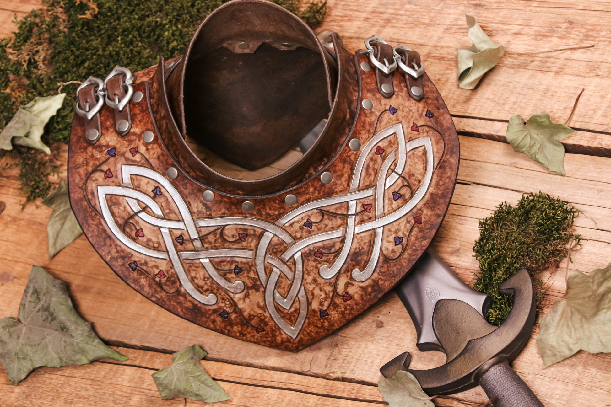 The elves are known for their versatility and agility, and this leather gorget always serves them well. With buckles on either side for adjustment, this gorget is a one size fits all, and can be combined with our Pauldrons/Spaulders.