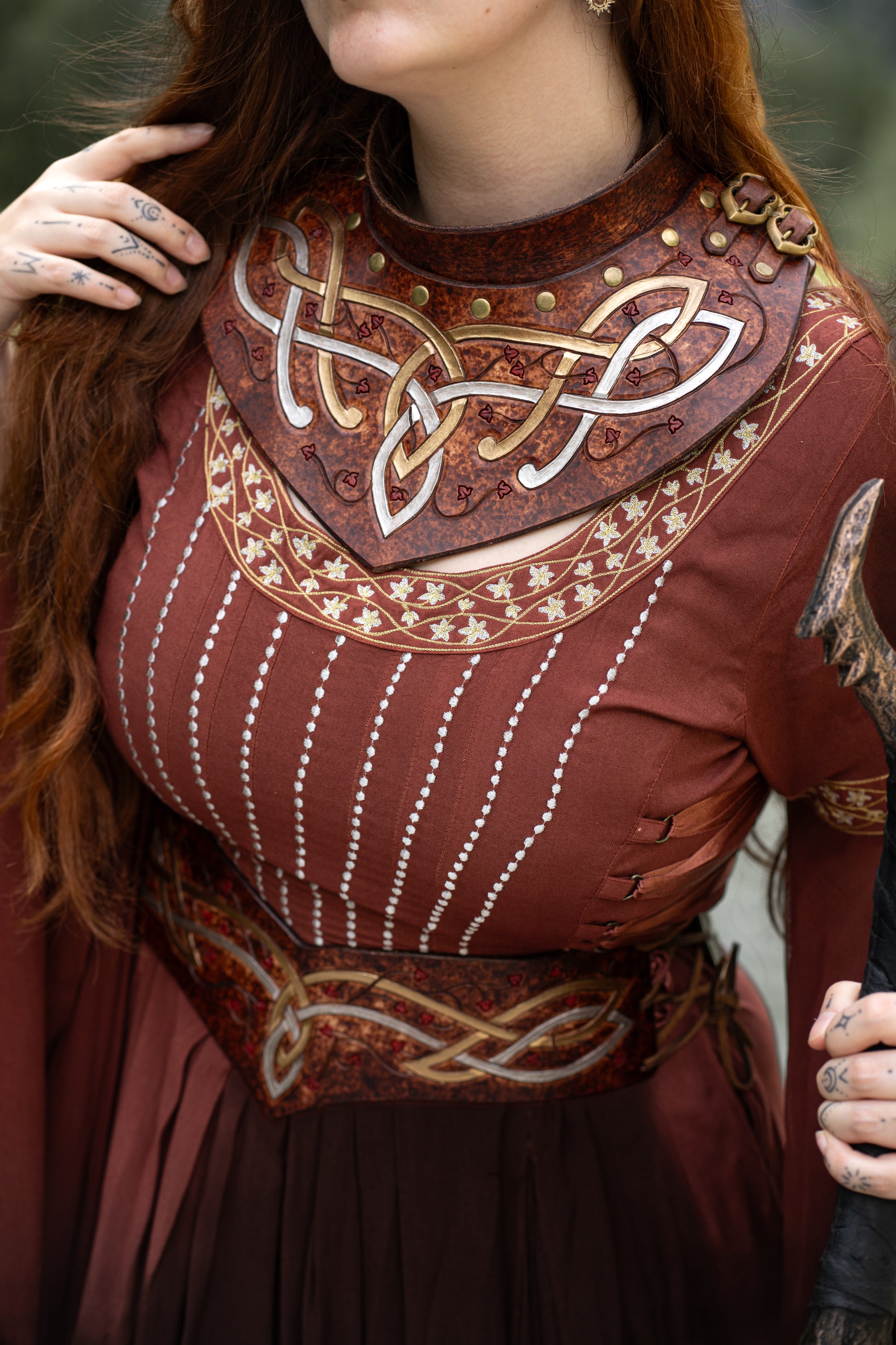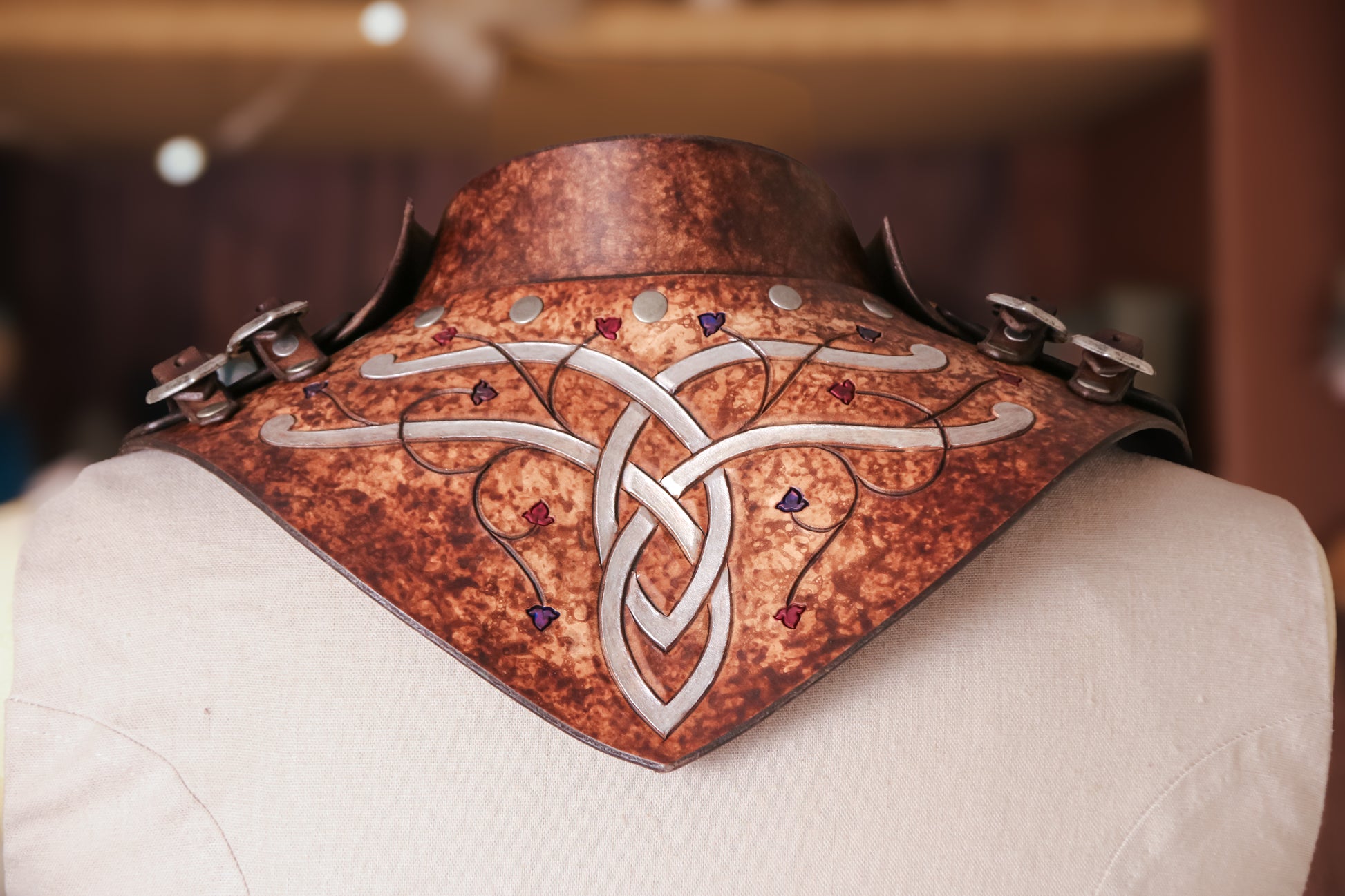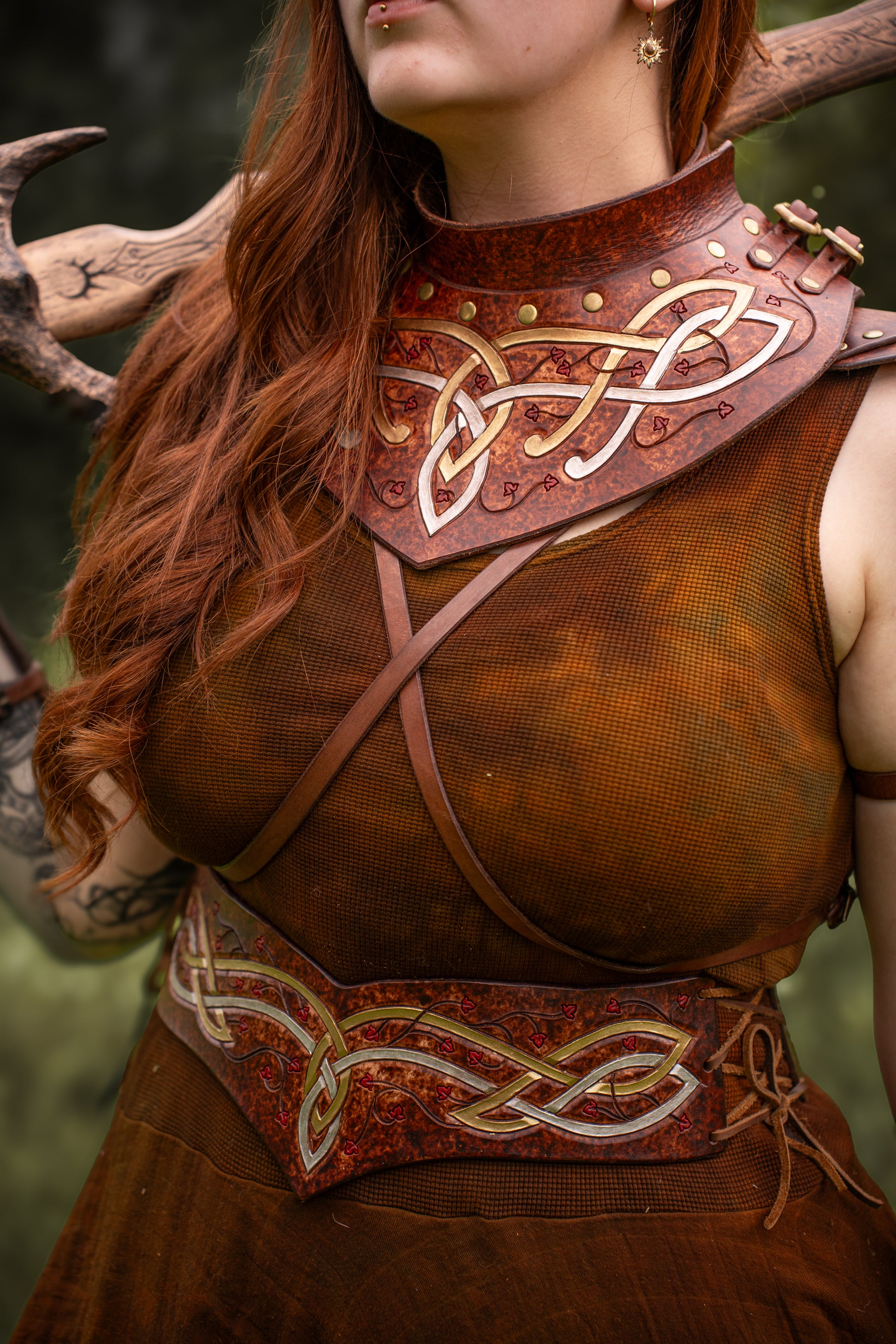 The elves are known for their versatility and agility, and this leather gorget always serves them well. With buckles on either side for adjustment, this gorget is a one size fits all, and can be combined with our Pauldrons/Spaulders.