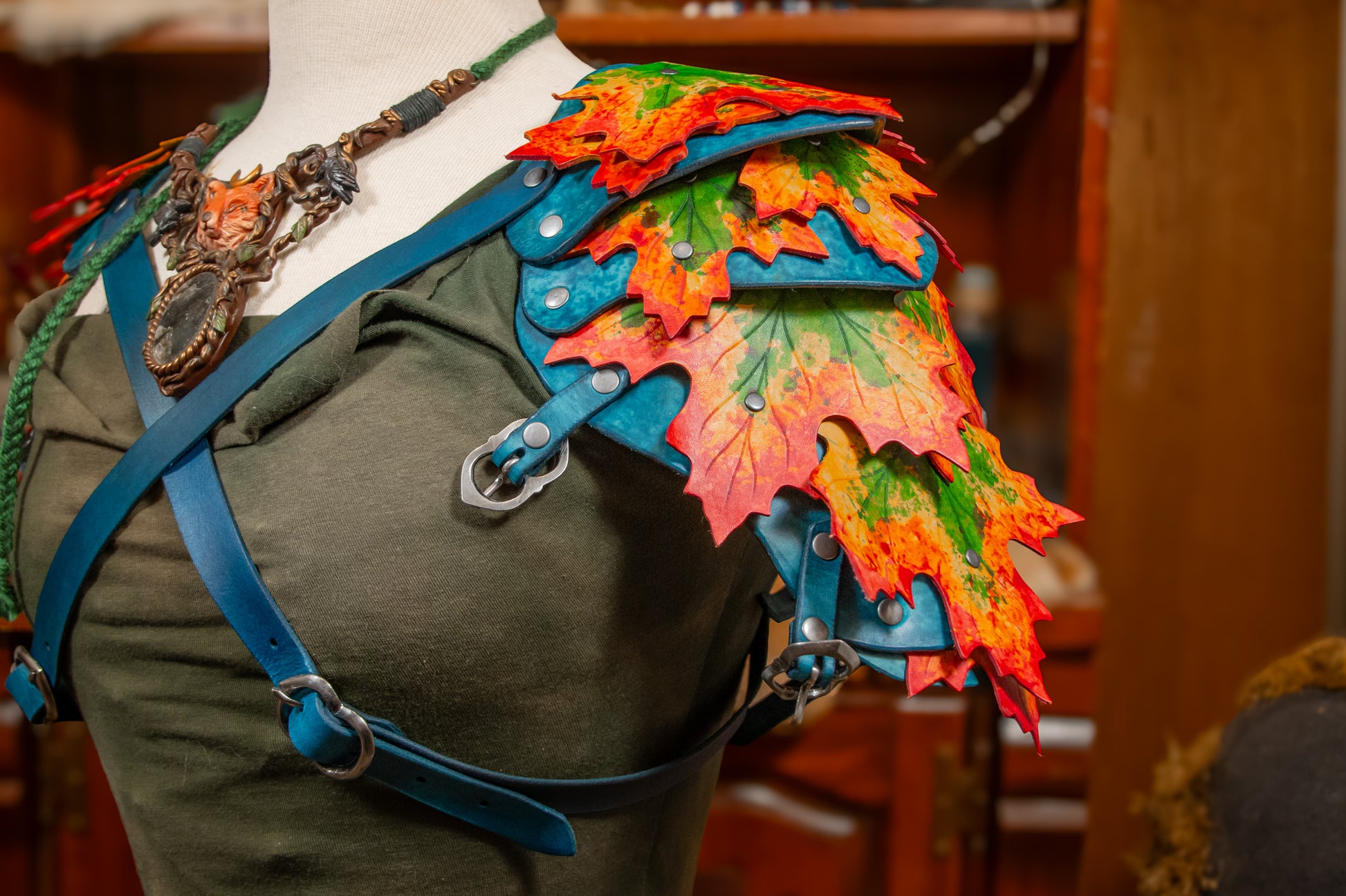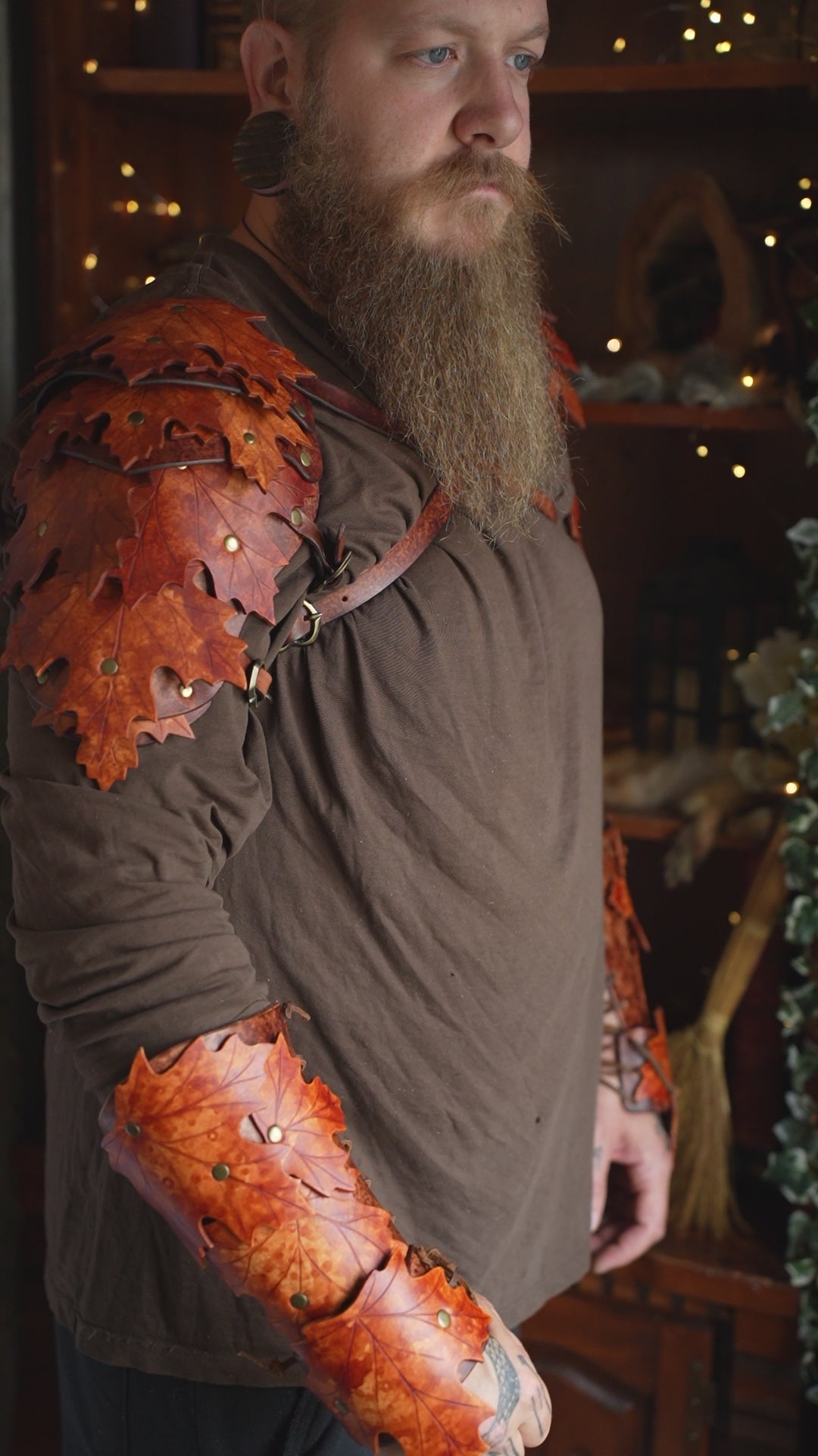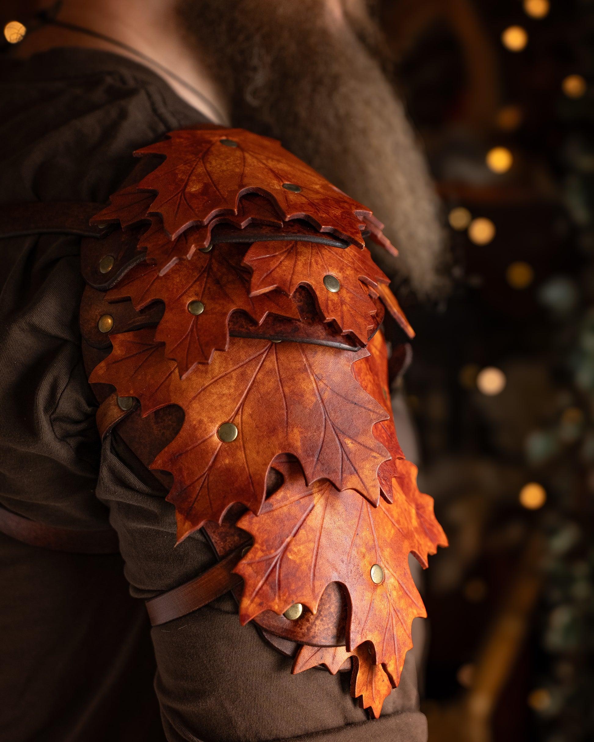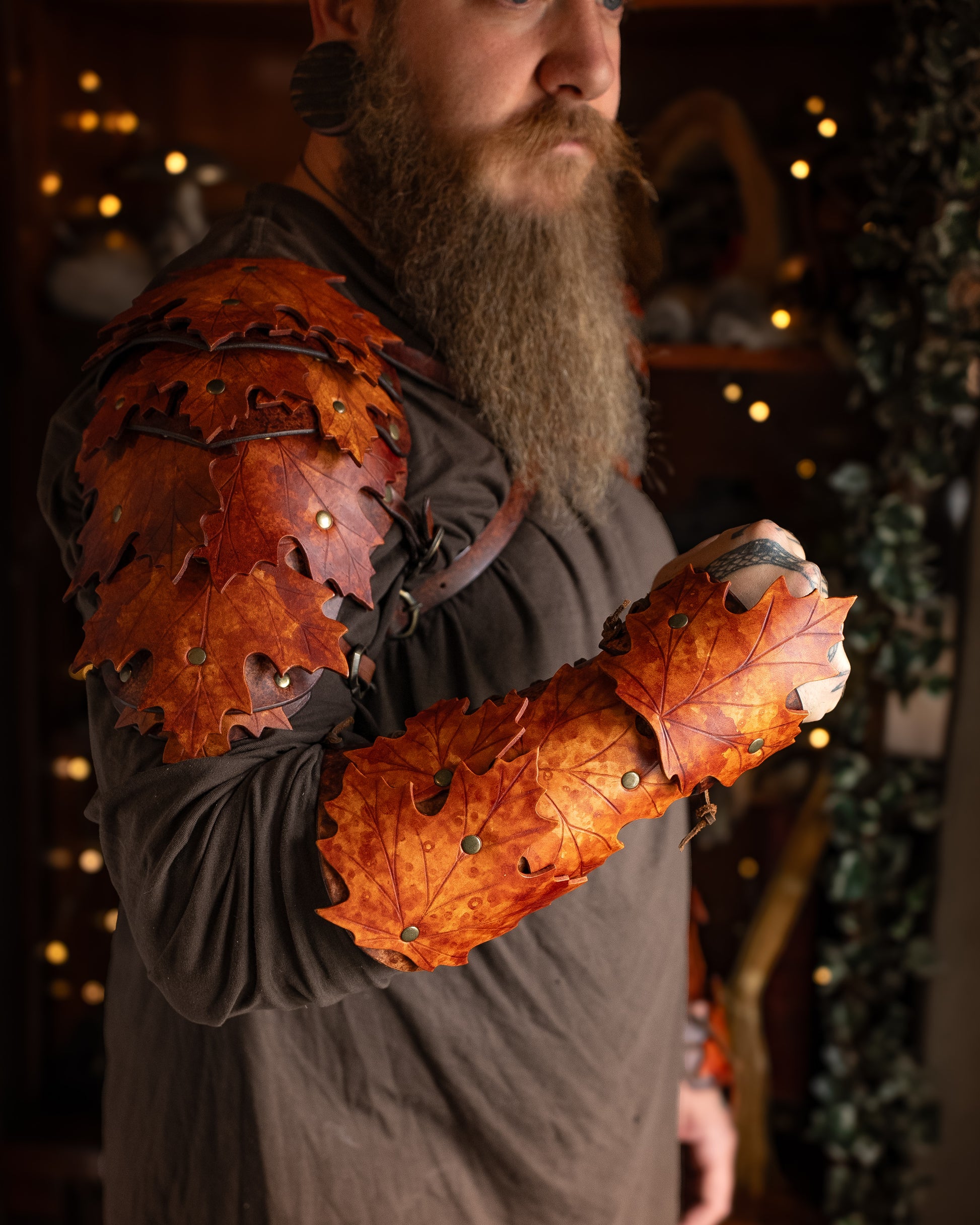 Modeled by Simbo, @simskaldson on Instagram, also wearing our Maple Leaf Bracers and Maple Leaf Cuff. Several photos are combined with our Maple Leaf Epaulettes.