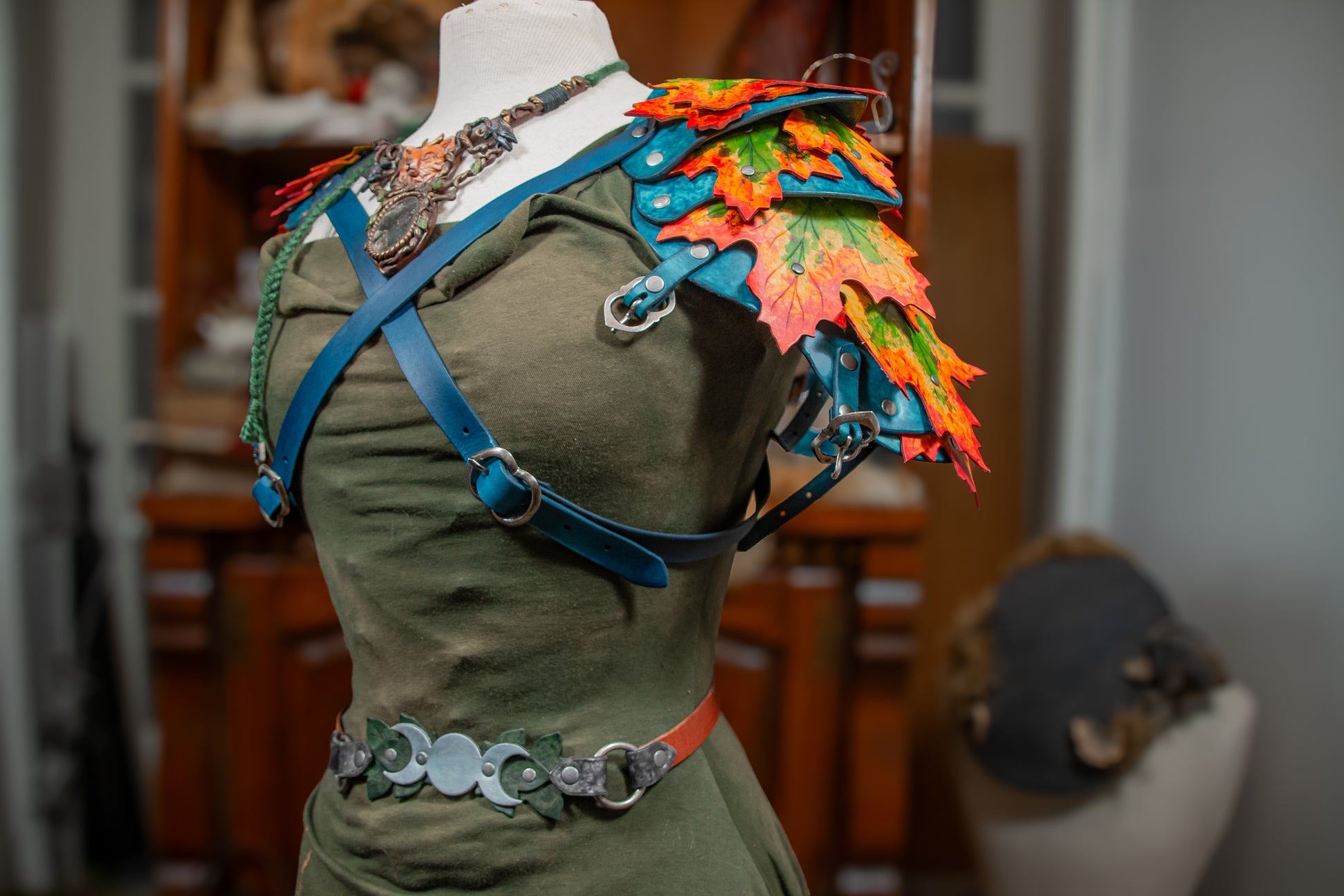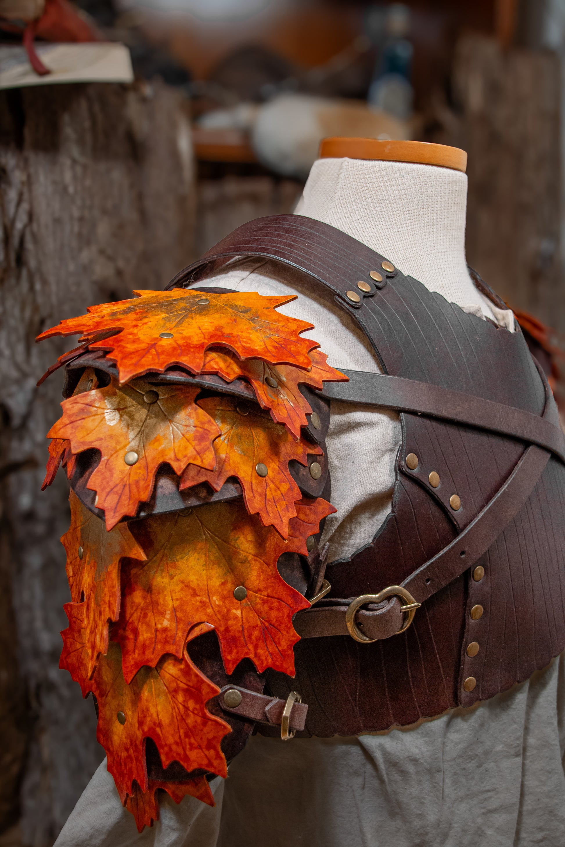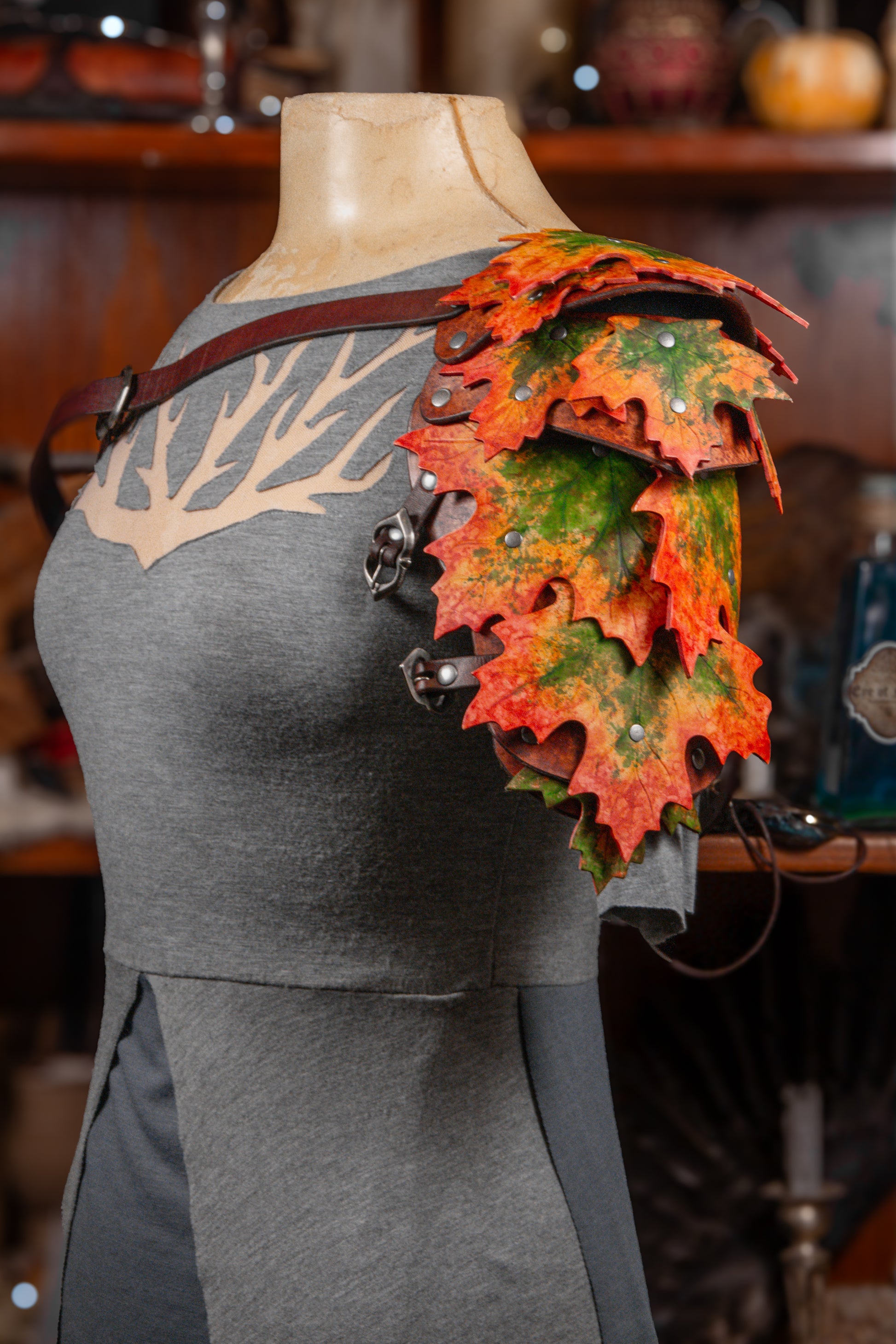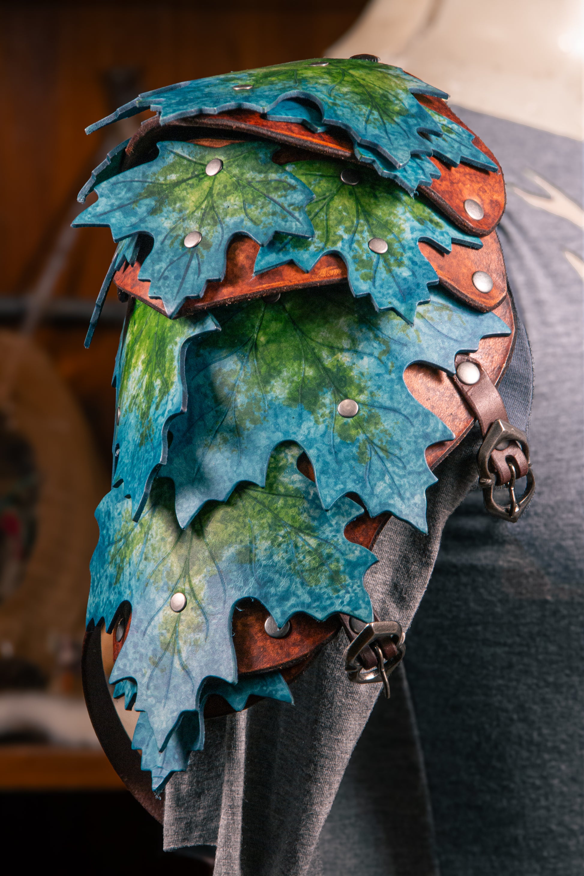 Modeled by Simbo, @simskaldson on Instagram, also wearing our Maple Leaf Bracers and Maple Leaf Cuff. Several photos are combined with our Maple Leaf Epaulettes.