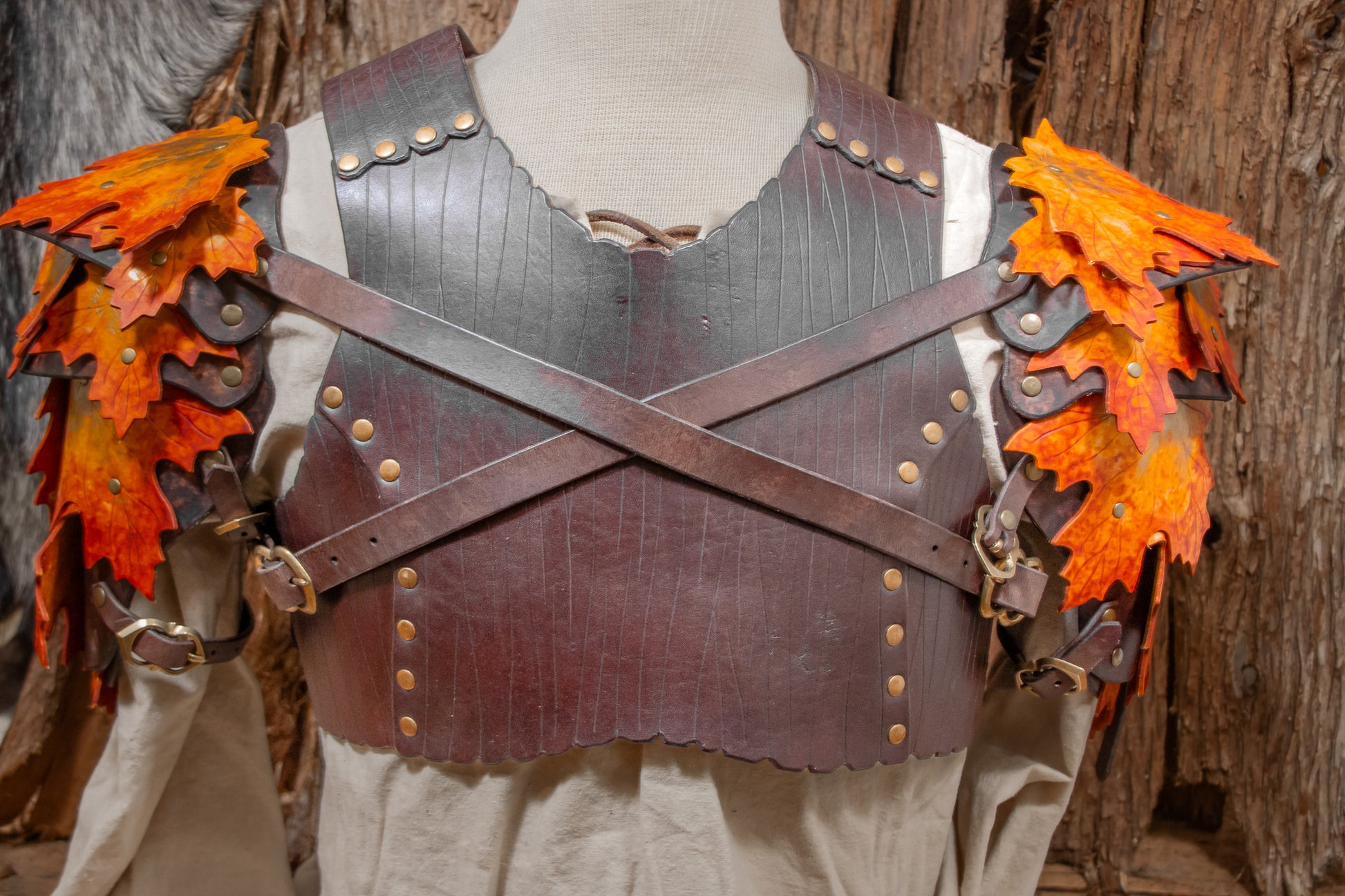 This armor is sturdy, made with 1/8 to 1/4in thick leather, and can be combined with any of our Gorget, Cross Chest Harnesses, or Clavicle Vests (not included)