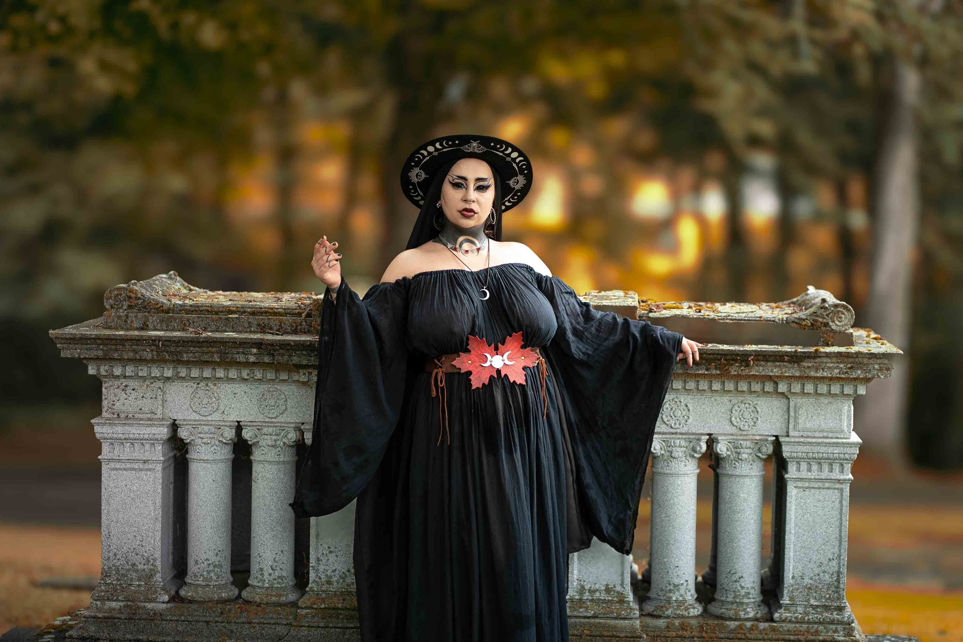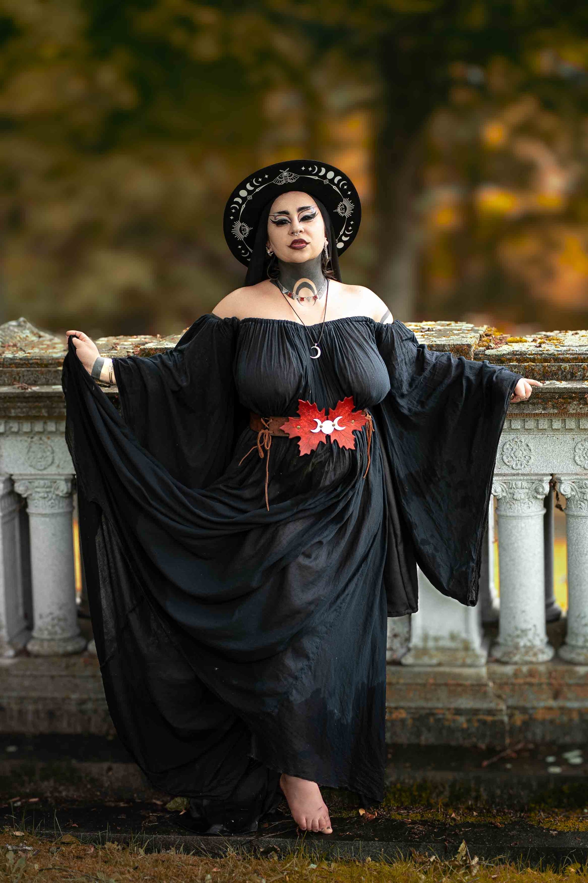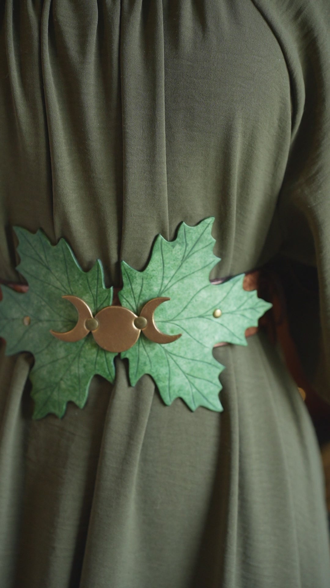 This belt is a beautiful combination of Fae and Witch, with a Triple Moon at the center, over a pair of maple leaves. Adjustable with two laces on either side, the belt will be custom sized to your waist measurement.
