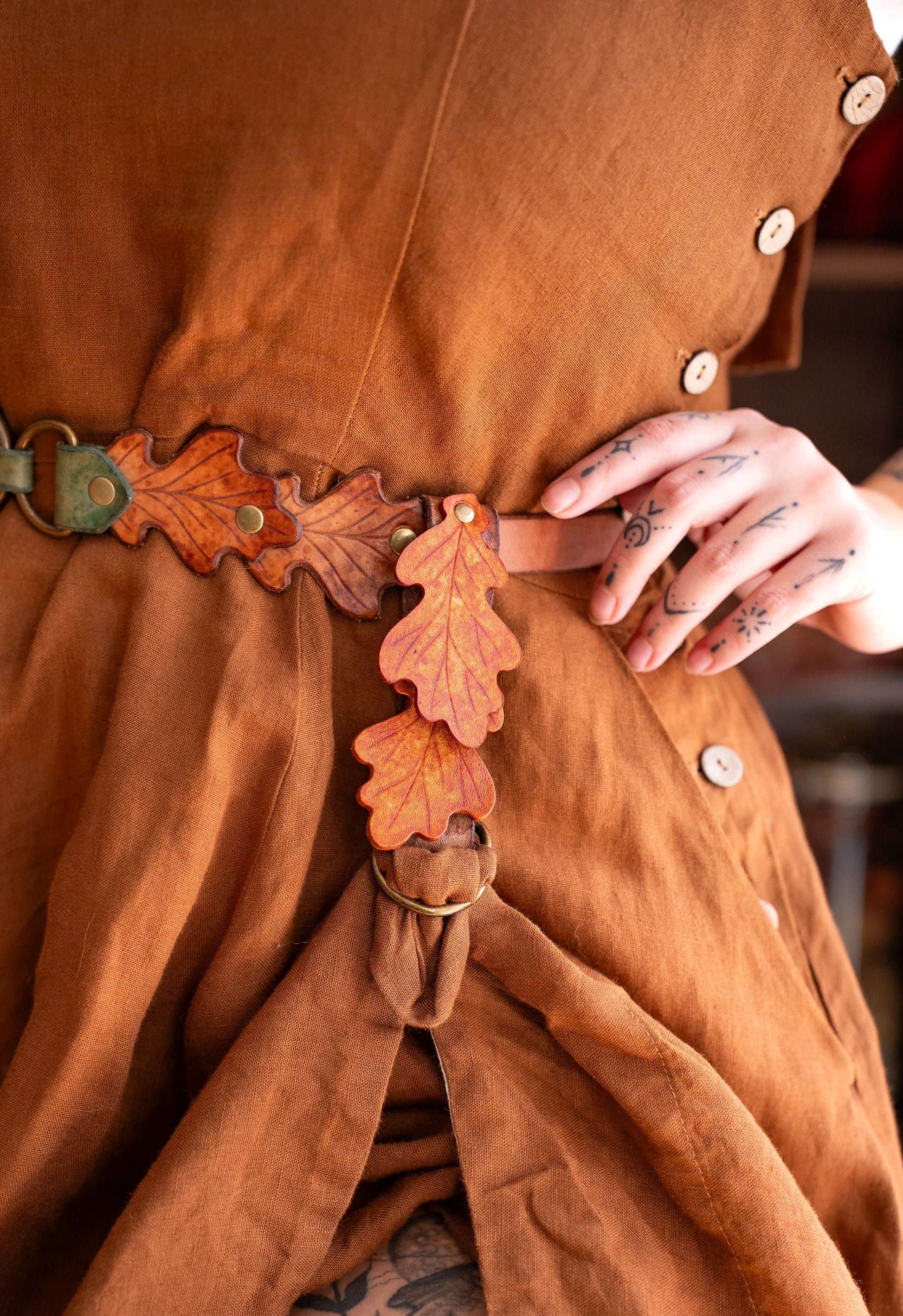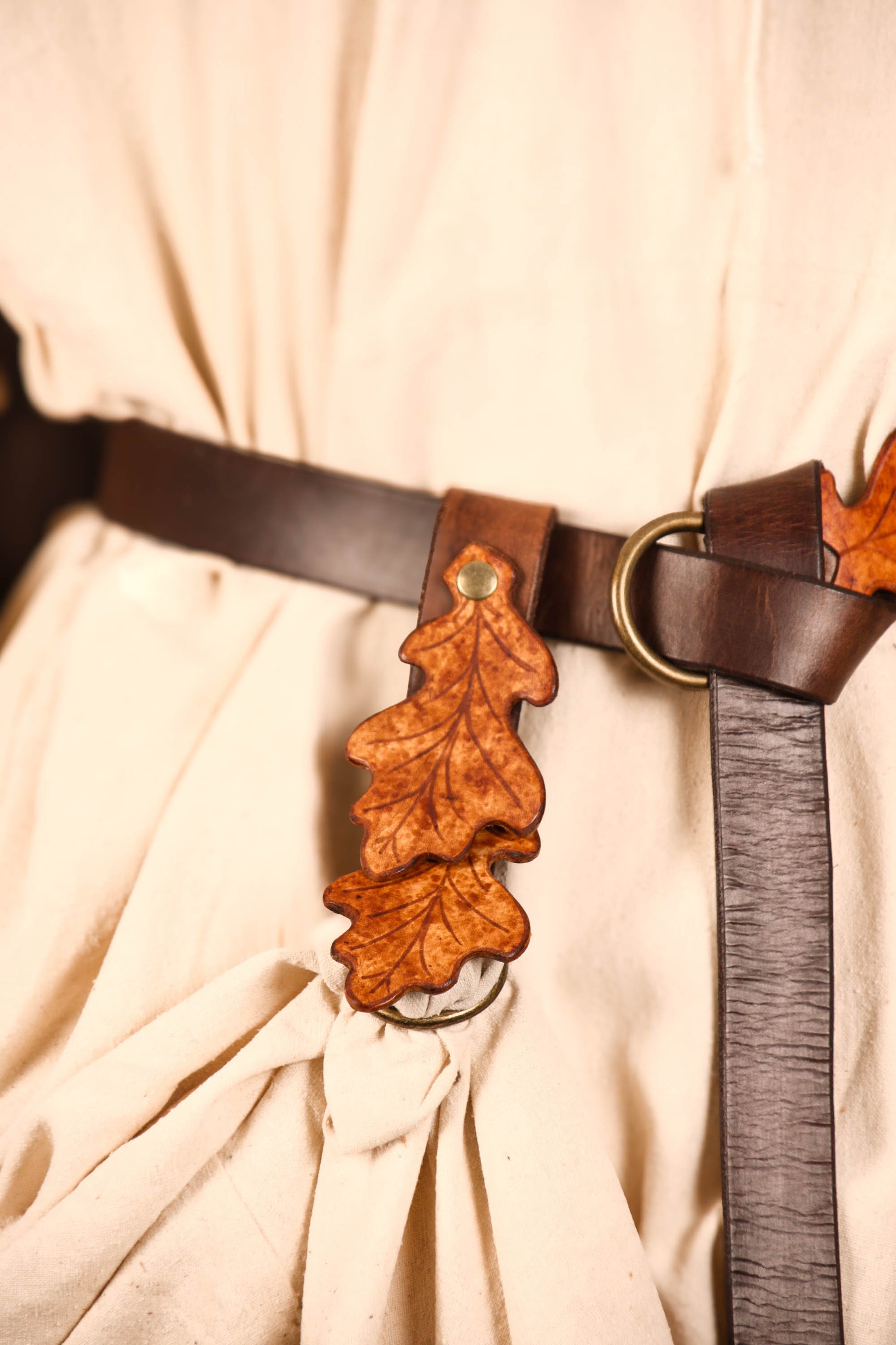 This will fit on any of our belts, but we recommend pairing it with the Oak Ring Belt, Oak Leaf Cincher or Everyday Fae Belt in Oak.