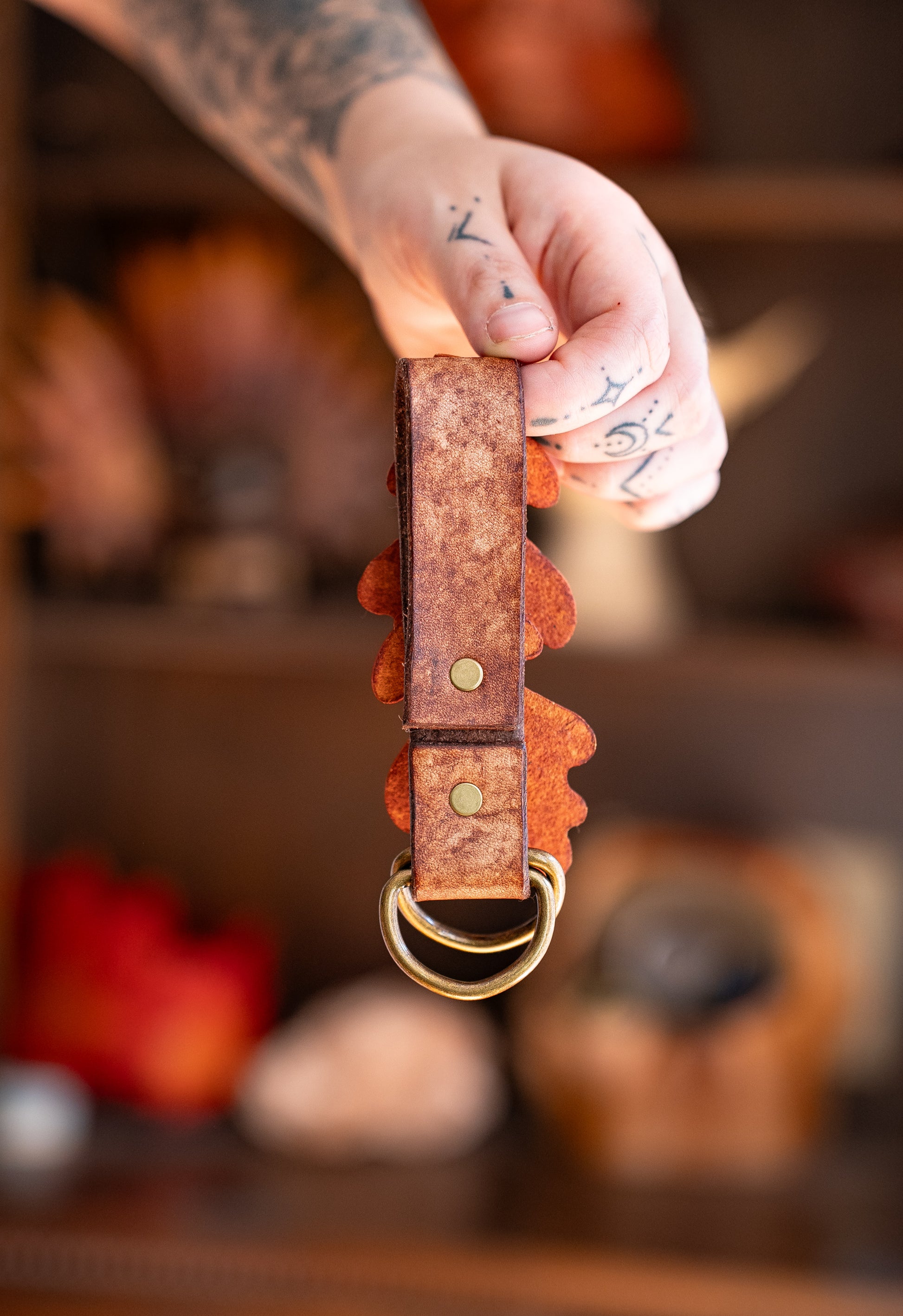 Lovingly crafted by hand with biodegradable veg tan leather and eco friendly dyes, and made to order. We will ship your items at the end of the month.