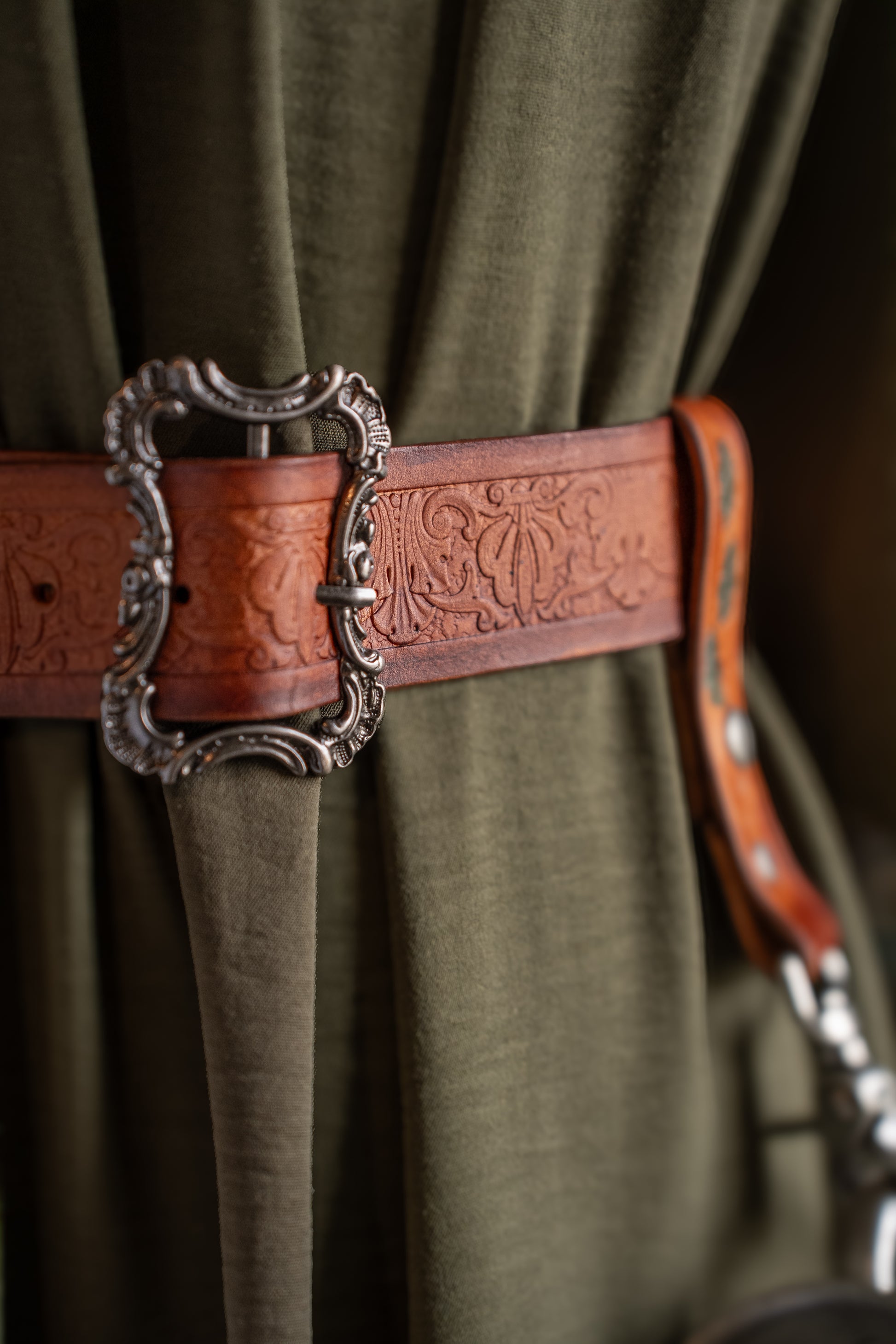 Set sail in style with this sturdy, handcrafted leather belt. Featuring bold, weathered finishes and intricate pirate-inspired embellishments, it’s the perfect accessory to complete your high-seas look. Whether you're searching for buried treasure, navigating the high seas, or donning your finest pirate attire at a Renaissance Faire, LARP, or medieval tavern night, this belt is ready for adventure.