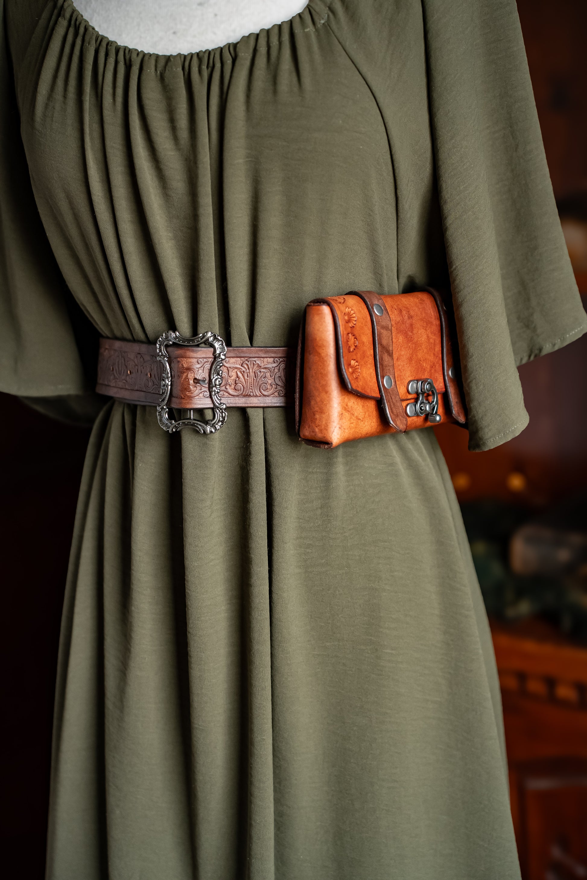 Modeled by @danikasdaydreams, with belt color Weathered Medium Brown. The second photo of the belt on wood is Weathered Black, the photos on the mannequin are Weathered Medium Brown, the second to last is Weathered Black and the last photo is Weathered Dark Brown.