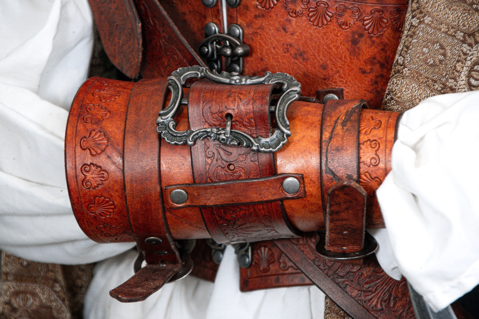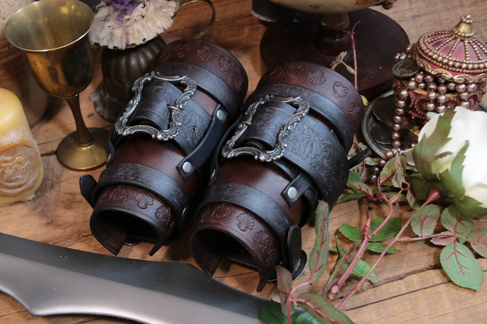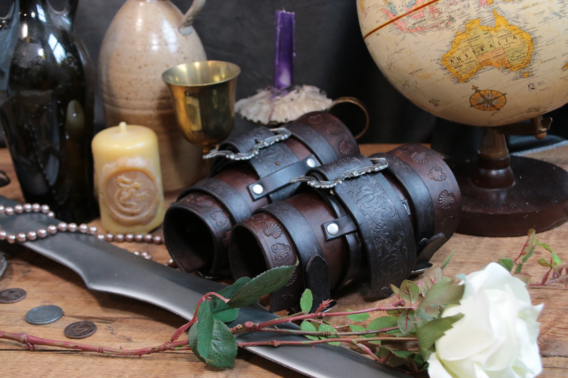 Weathered by the salty sea breeze, these bracers add a bold edge to any pirate outfit. Crafted with tough leather and enhanced with nautical details, they’ll keep your forearms protected while you navigate the storms of life. Perfect for completing your look at a Renaissance Faire, LARP, or medieval tavern event, these bracers are designed for both adventure and style.