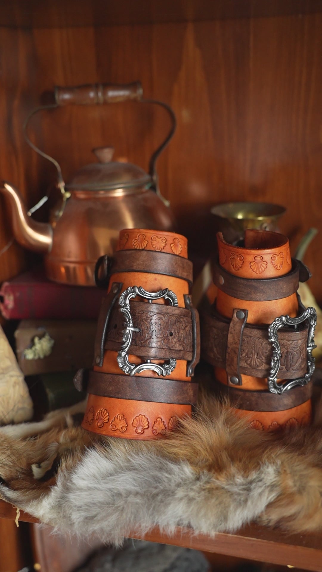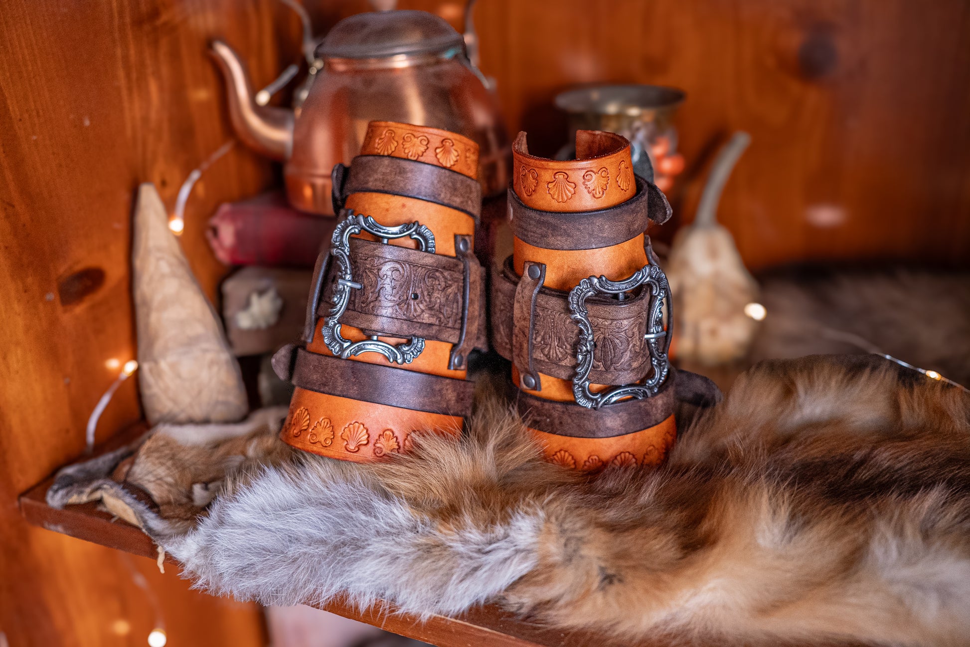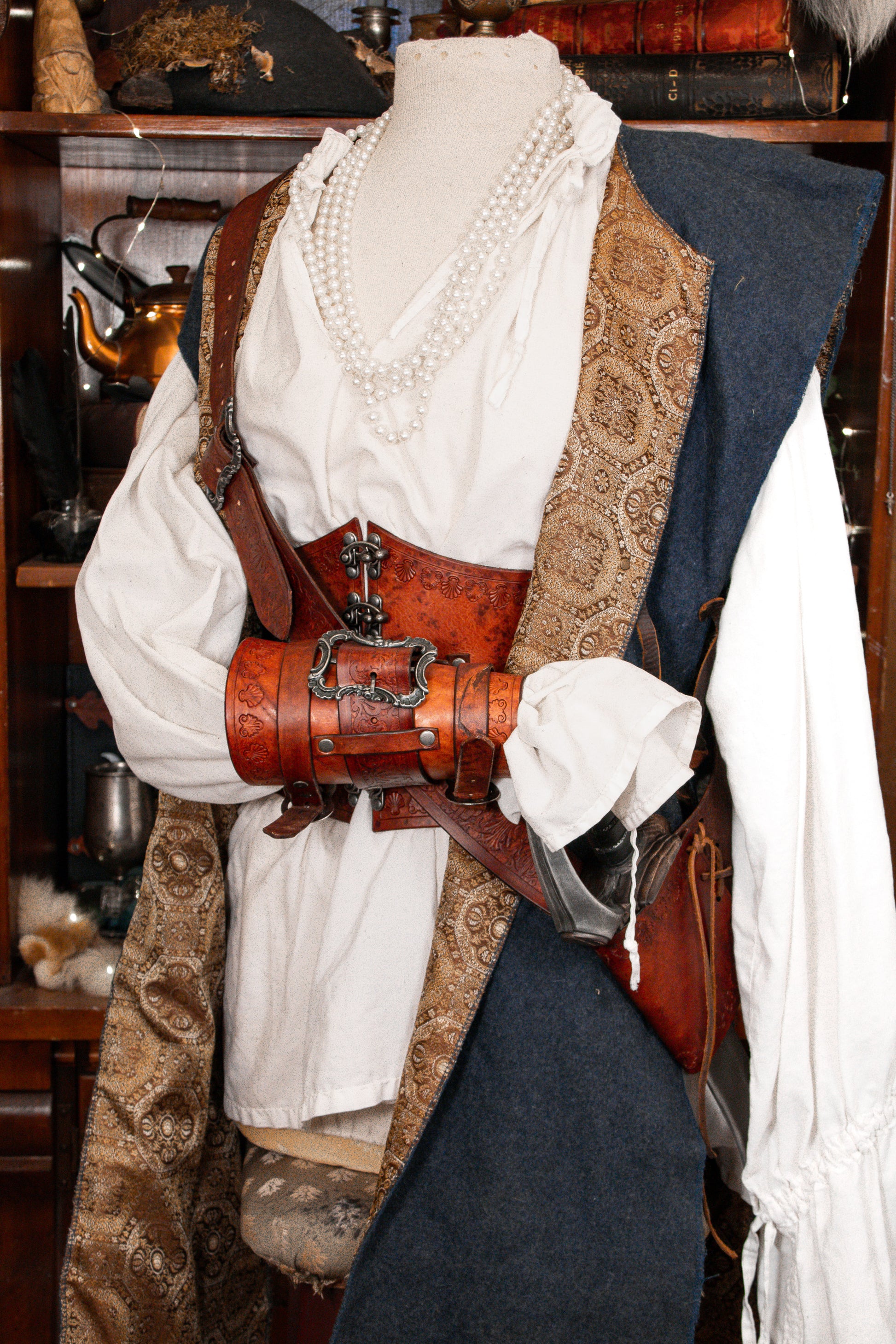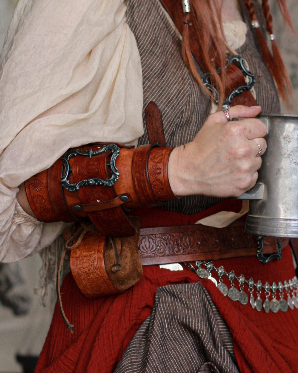 Weathered by the salty sea breeze, these bracers add a bold edge to any pirate outfit. Crafted with tough leather and enhanced with nautical details, they’ll keep your forearms protected while you navigate the storms of life. Perfect for completing your look at a Renaissance Faire, LARP, or medieval tavern event, these bracers are designed for both adventure and style.