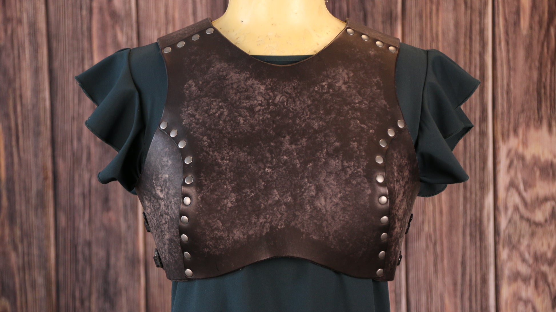 This unisex half-breastplate (or demi-cuirass) is high customizable for different cup sizes and underbust circumferences! The model is wearing a C-cup, and we can easily go from Flat all the way up to a DD cup. Please inquire if you have a special sizing request or any of the measurement selections are unclear.