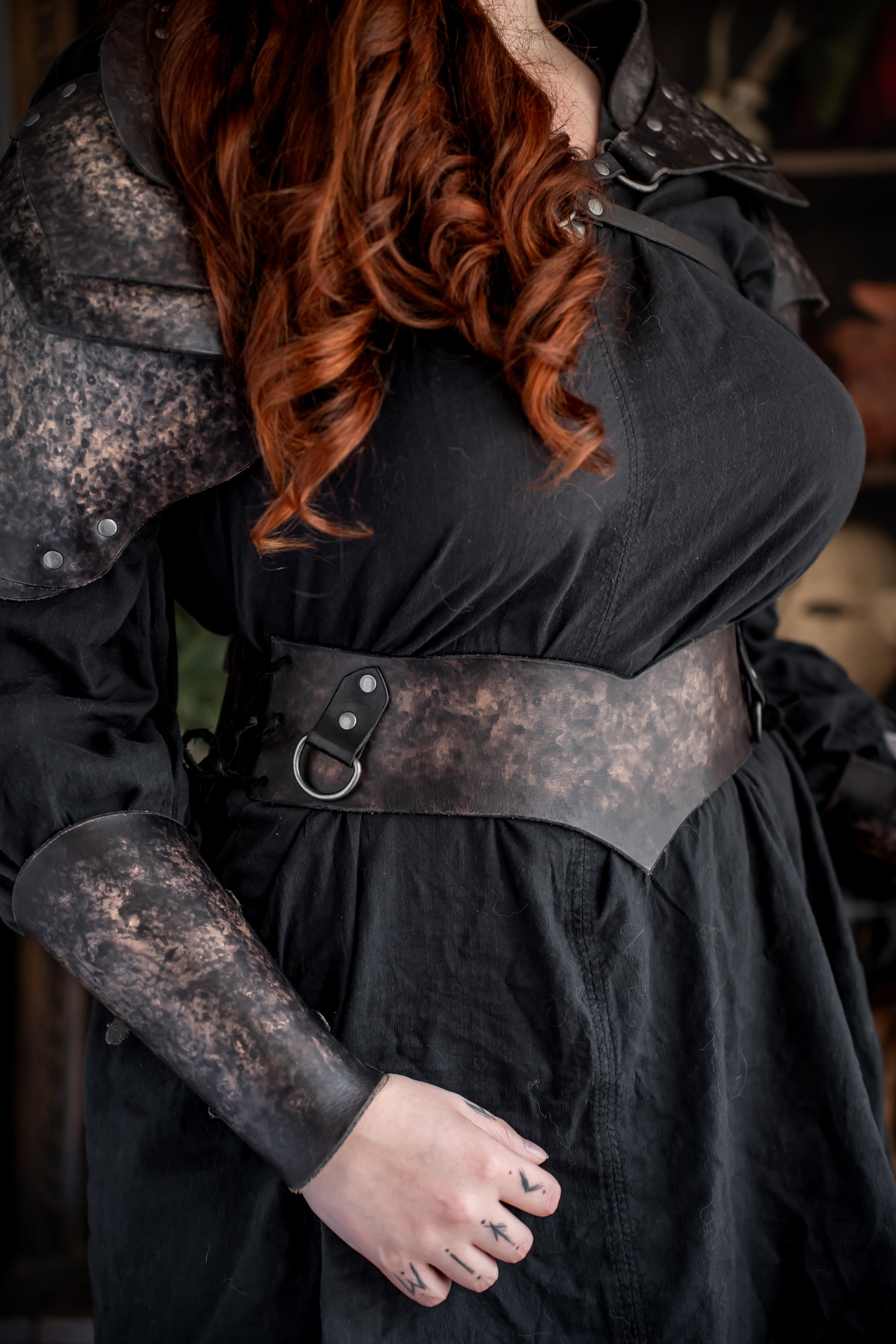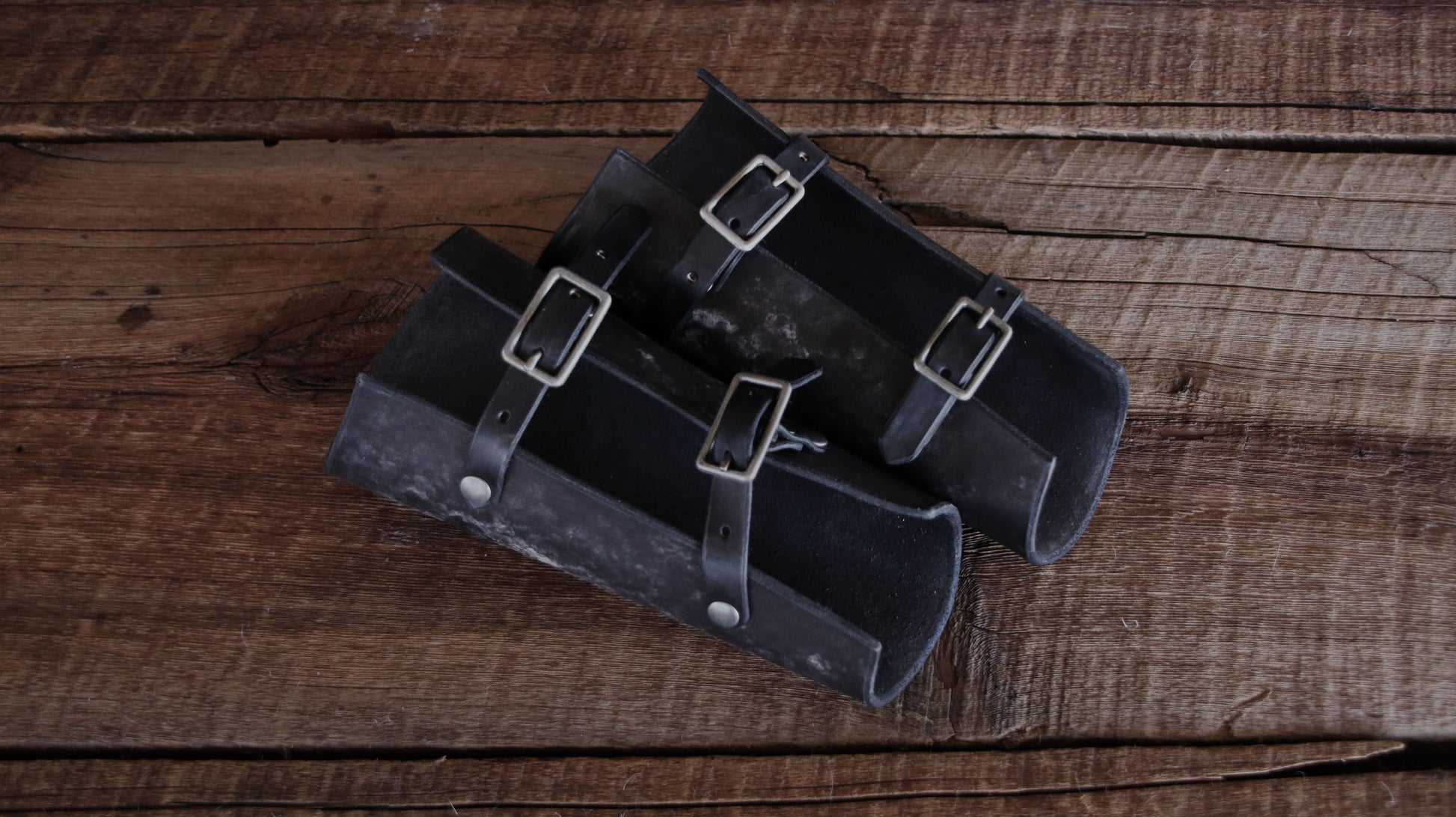 These bracers have no tooling, but they look very stylish with their speckled, mottled pattern, available in black, brown or tan. Pimp up your LARP costume with either black, brown or tan speckled medieval armor!