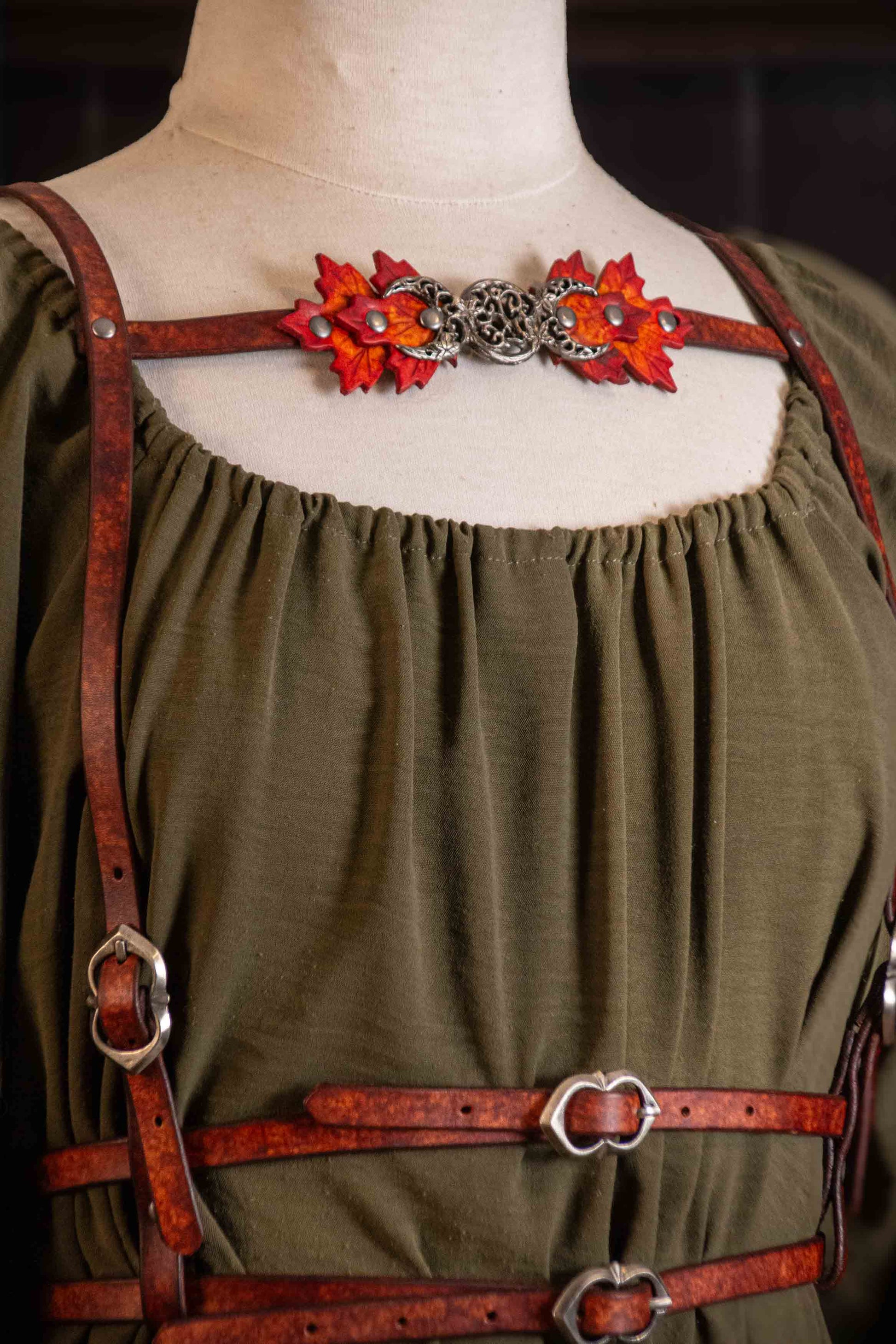 Vous pouvez choisir les couleurs des feuilles, des lunes, du bracelet et du métal, selon vos goûts. Le tour de taille correspond à votre vraie taille, et la taille et les bretelles sont réglables (la taille de 4 pouces, les épaules de 3 pouces).