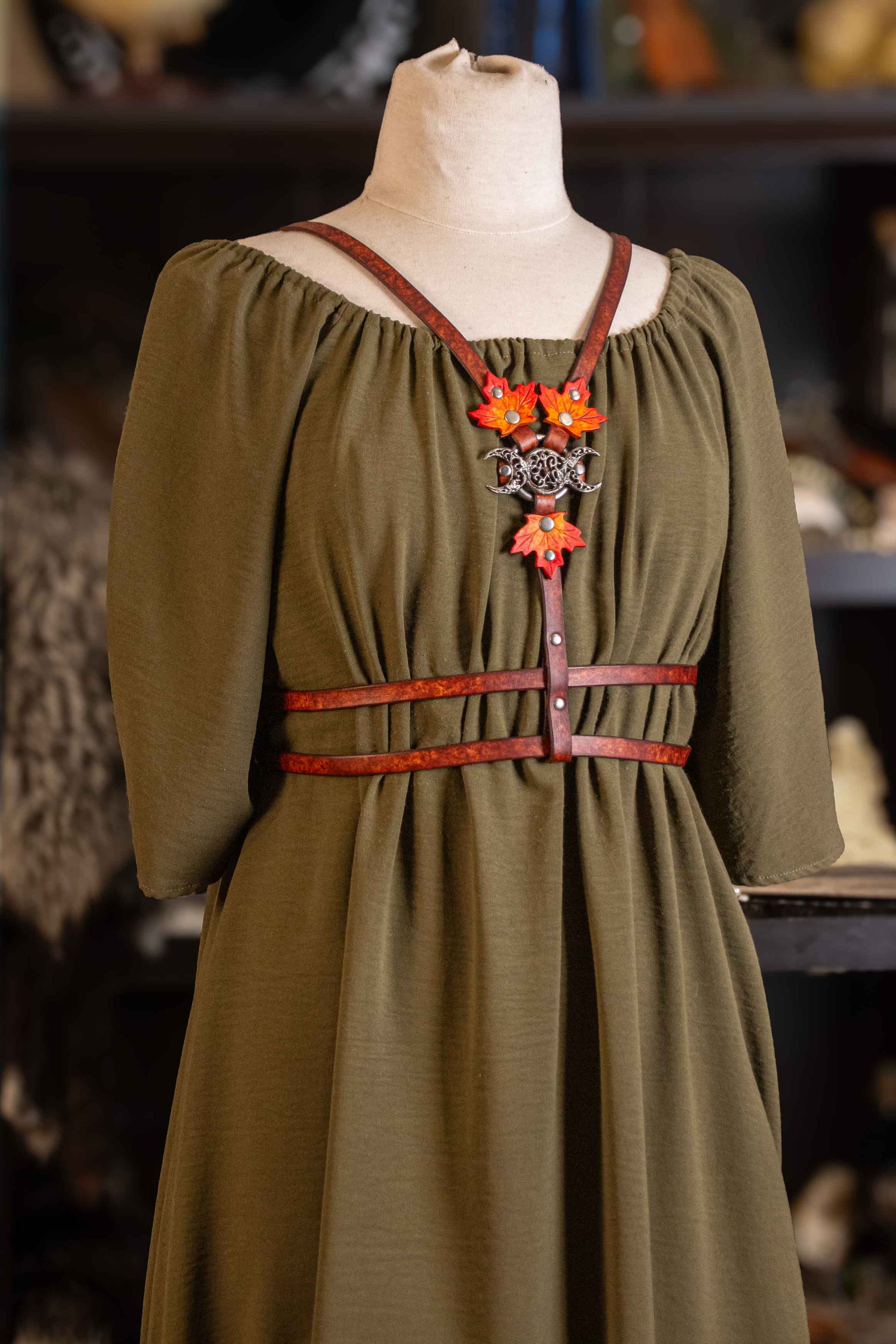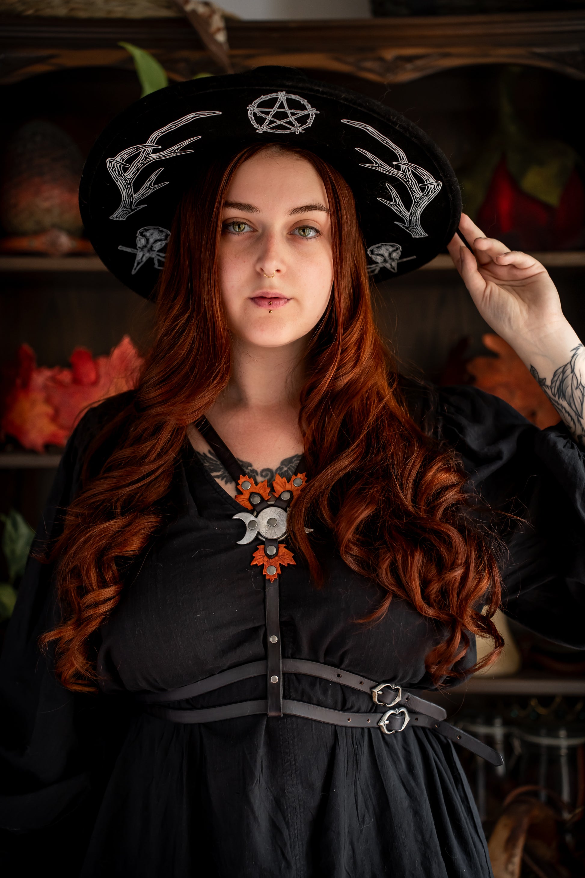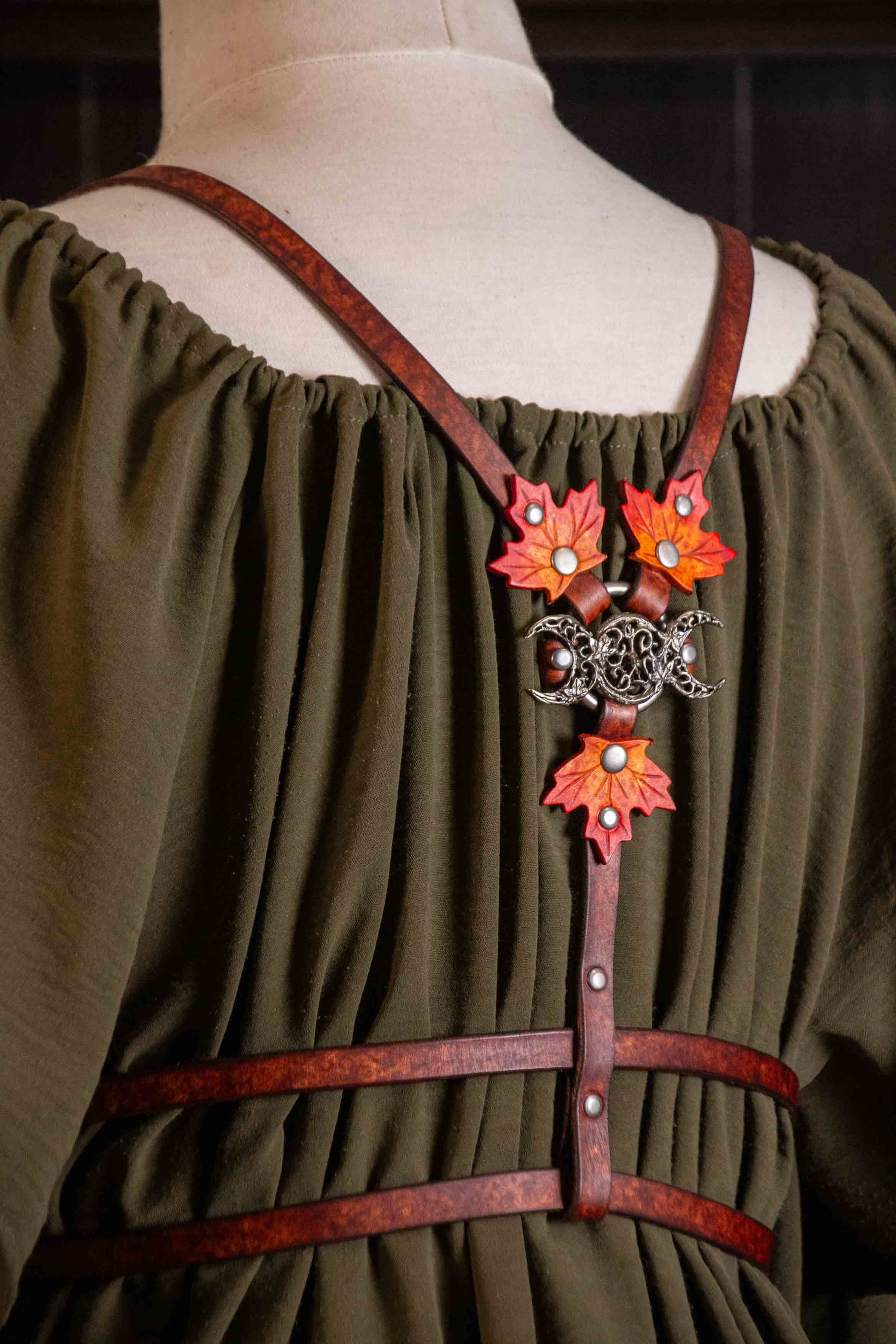 Ajoutez une touche d'éclat à votre garde-robe de sorcière ou de sorcier avec ce harnais qui peut être porté de deux façons ! Tu peux porter la forme en Y devant, ou derrière, avec les deux côtés comportent la triple lune, symbole d'Hécate : Mère, Jeune Fille et Vieille.