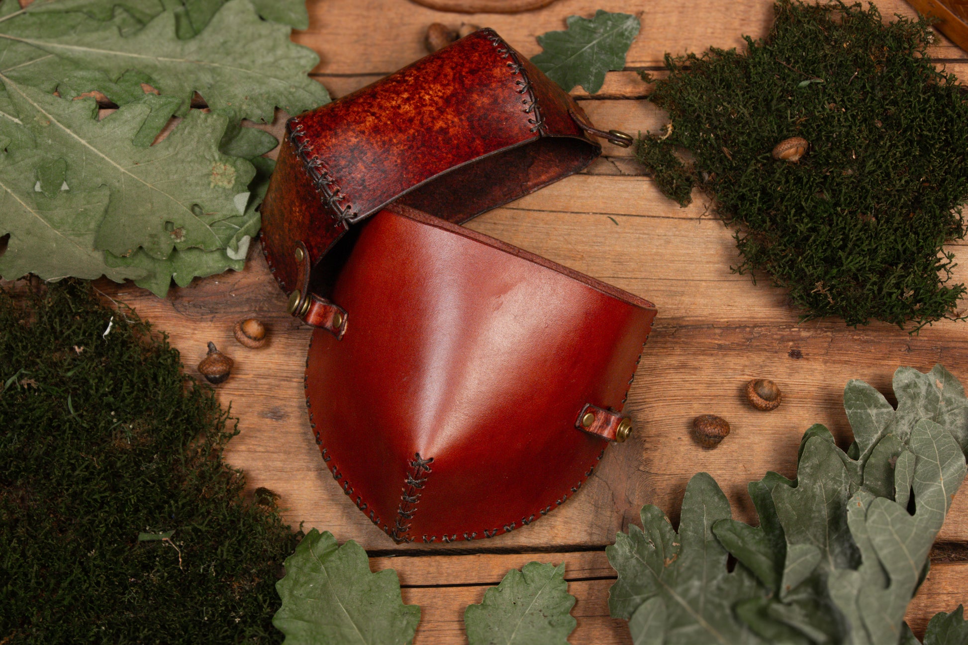 Materials: veg tan leather with metal hardware