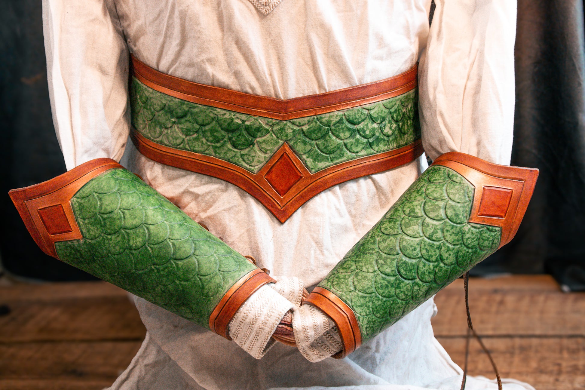 Perfect for both mermaids and warriors, the Atlantas Cincher combines rugged, durable leather with an elegant scale pattern. Unisex and versatile, this cincher is ideal for any Aquaman cosplay or LARP and Ren Faire attendees looking for a piece that provides both comfort and style. Whether you're preparing for battle or navigating the deep, the Atlantas Cincher ensures you move with ease and confidence.