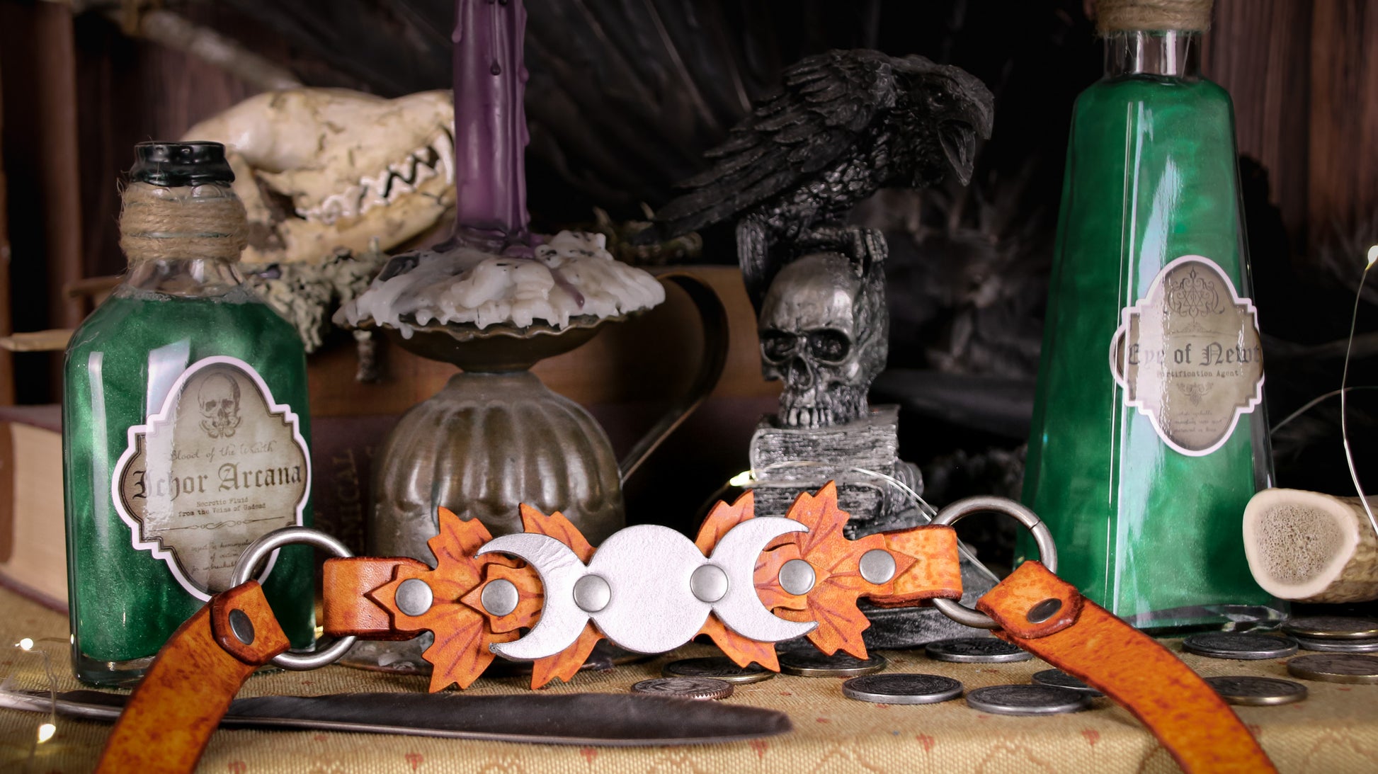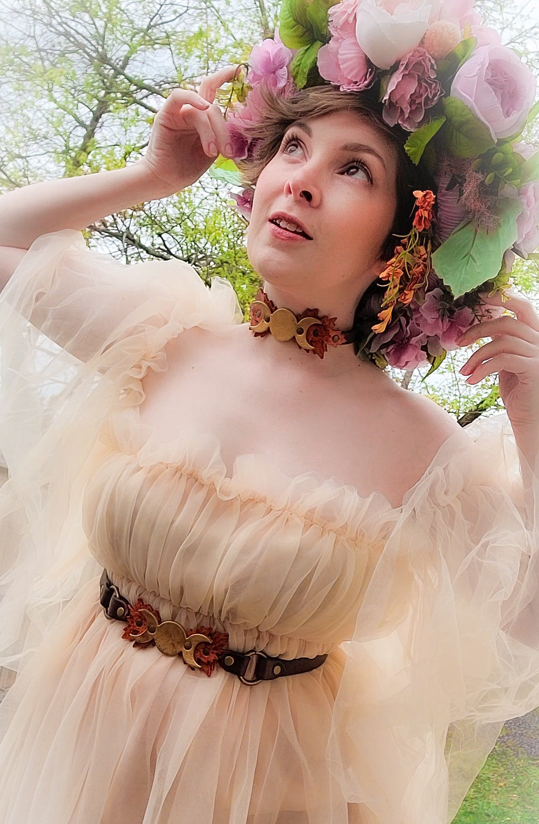 Want to add a hint of sacred magick to your everyday wardrobe? This delightfully delicate waist belt goes beautifully with tunics or chemises for witchy or dark academia looks, or over a little black dress for a night out dancing (preferably with your coven under the full moon).