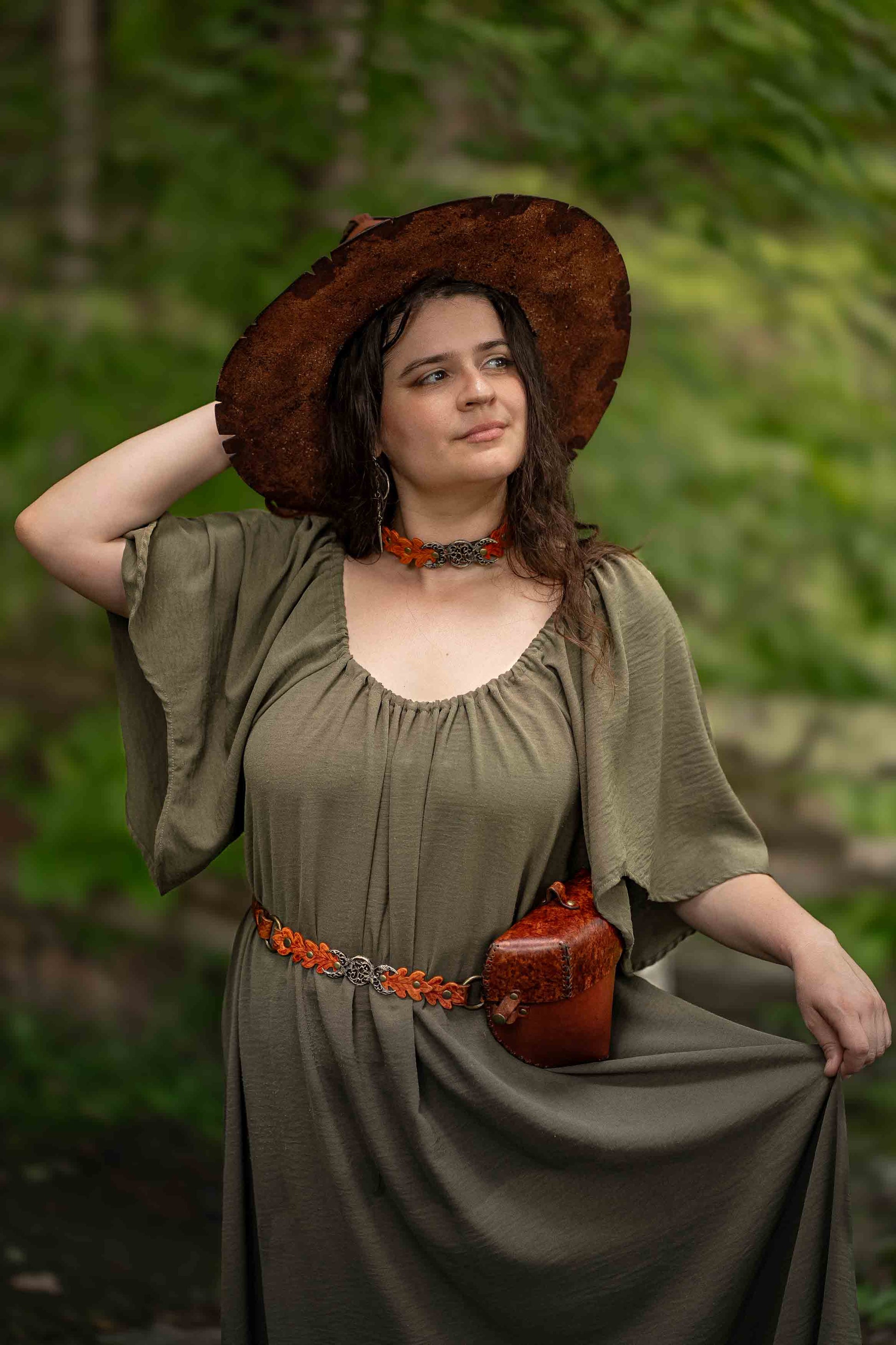 As a busy butter witch who is often shape-shifting and sneaking around moors and bogs to steal cream and butter, I needed a belt on which to latch my leather pouch. Of course I wanted to look fabulous too. This belt is everything I wanted. Made to order, it is a special piece that I can't wait to show off.