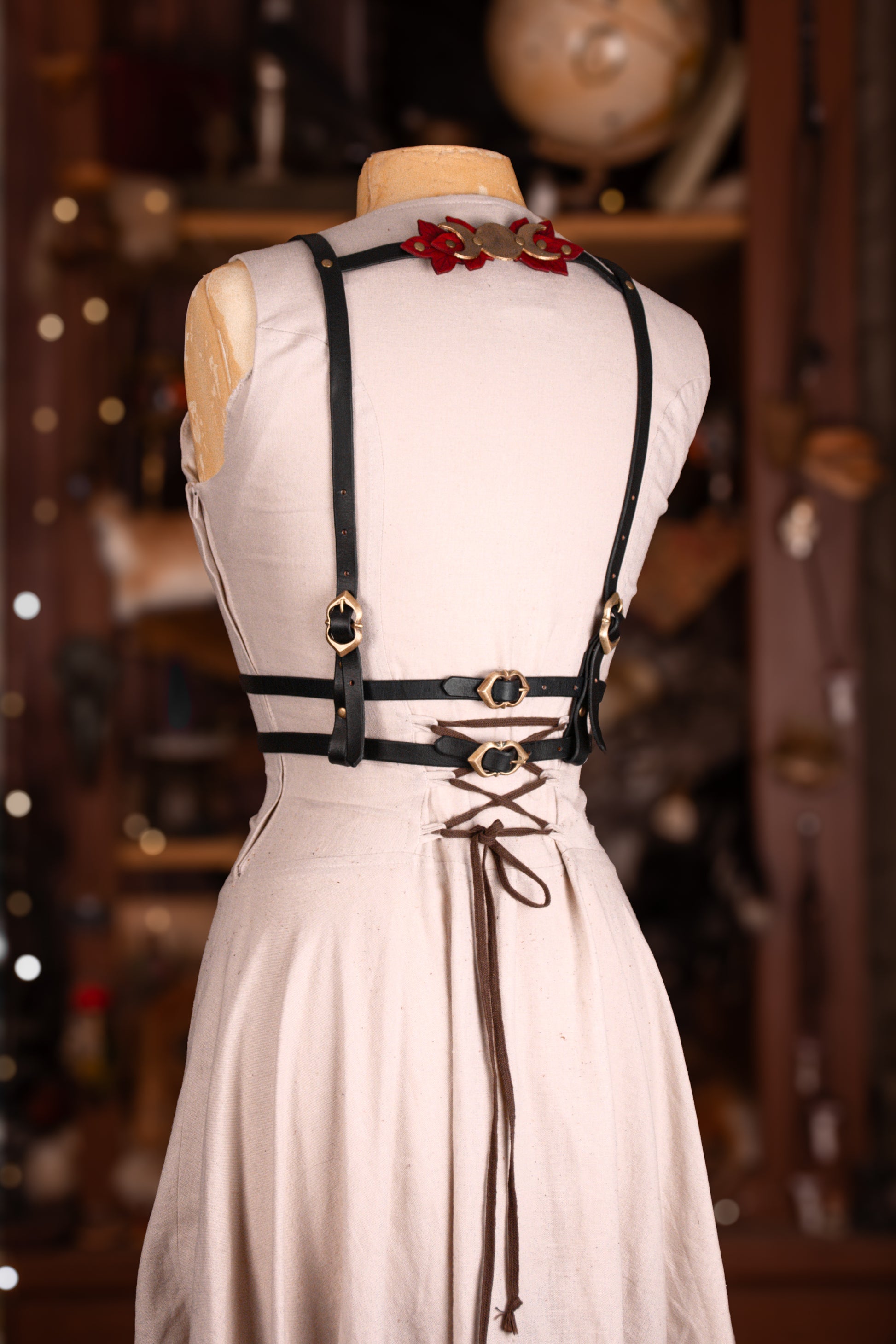 Add some flare to your witch or warlock wardrobe with this harness that can be worn two ways! You can wear the Y shape in the front, or in the back, with both sides featuring the triple moon, the symbol of Hecate: Mother, Maiden and Crone.