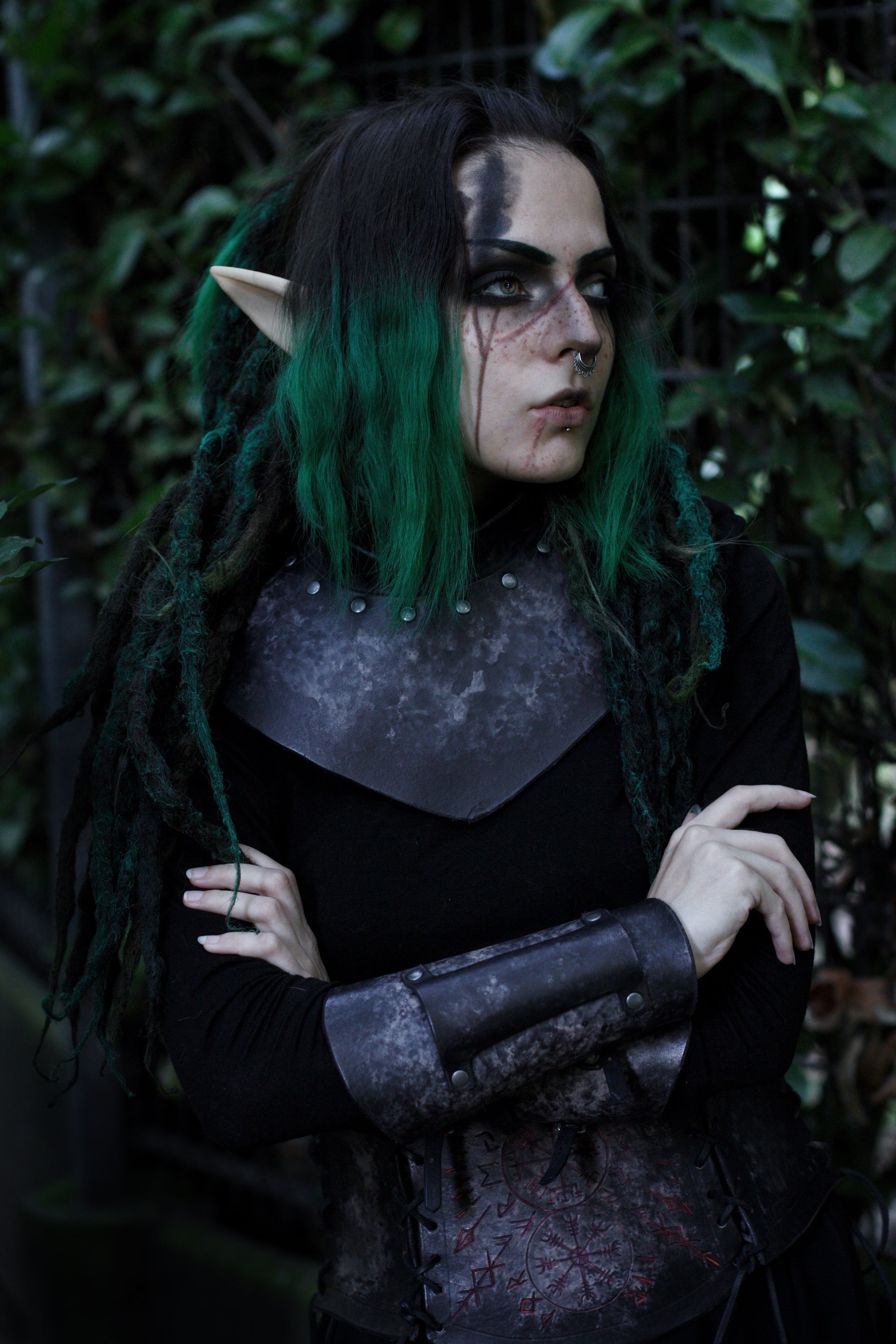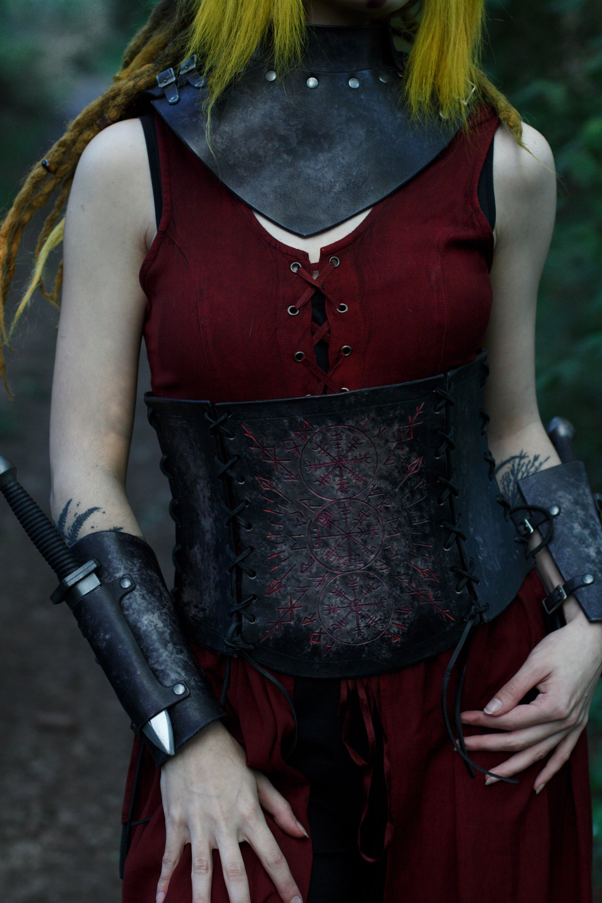 For a complete armor look, it can be combined with any of our Clavicle Vests, Half-breastplates, corsets, bracers or matching Pauldrons (not included).