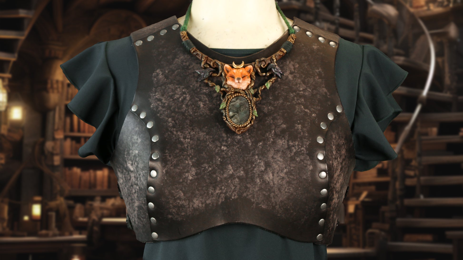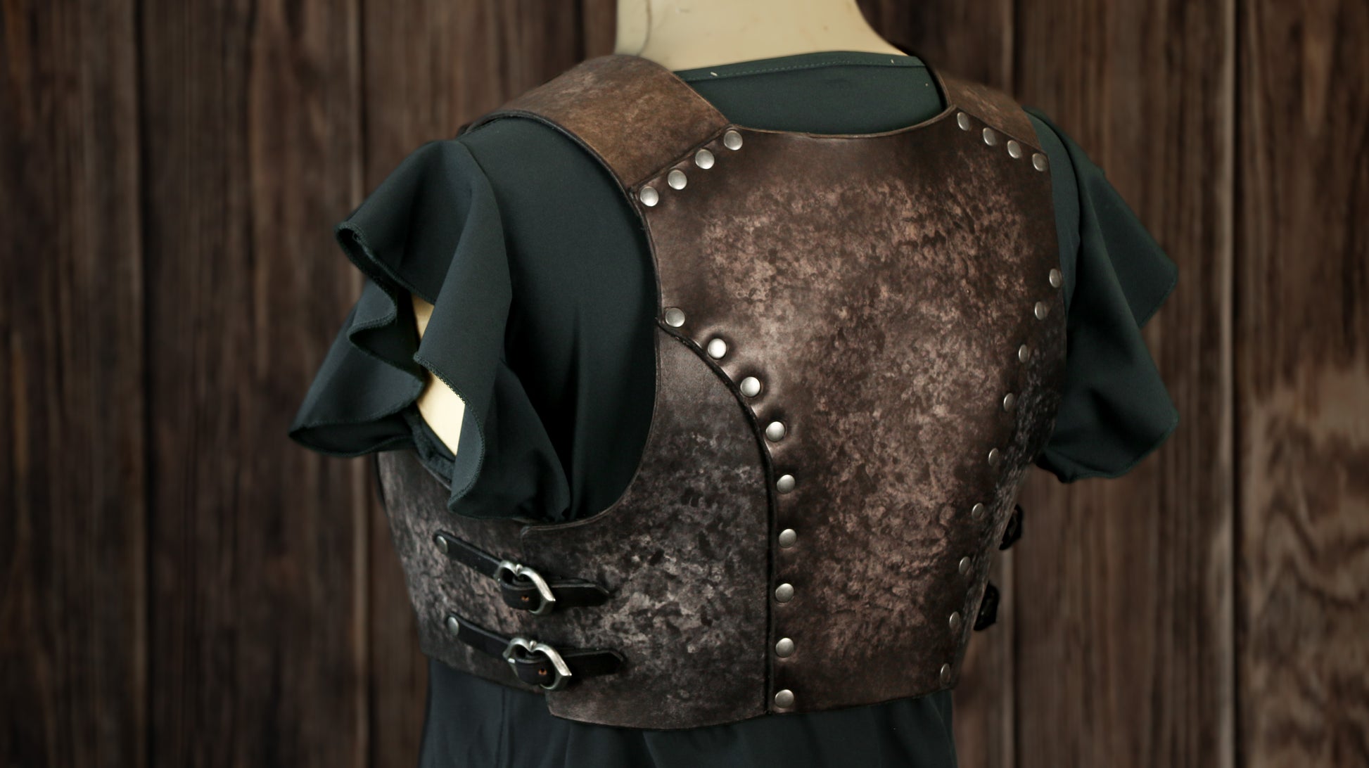 This unisex half-breastplate (or demi-cuirass) is high customizable for different cup sizes and underbust circumferences! The model is wearing a C-cup, and we can easily go from Flat all the way up to a DD cup. Please inquire if you have a special sizing request or any of the measurement selections are unclear.