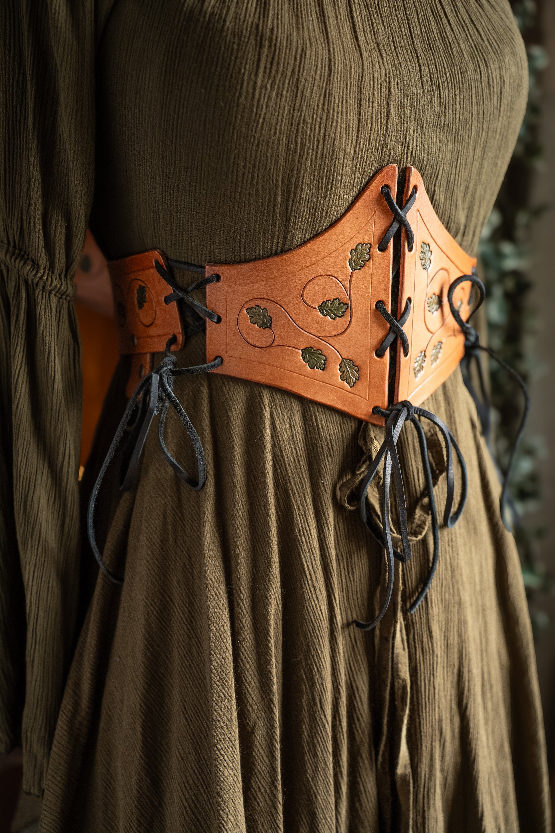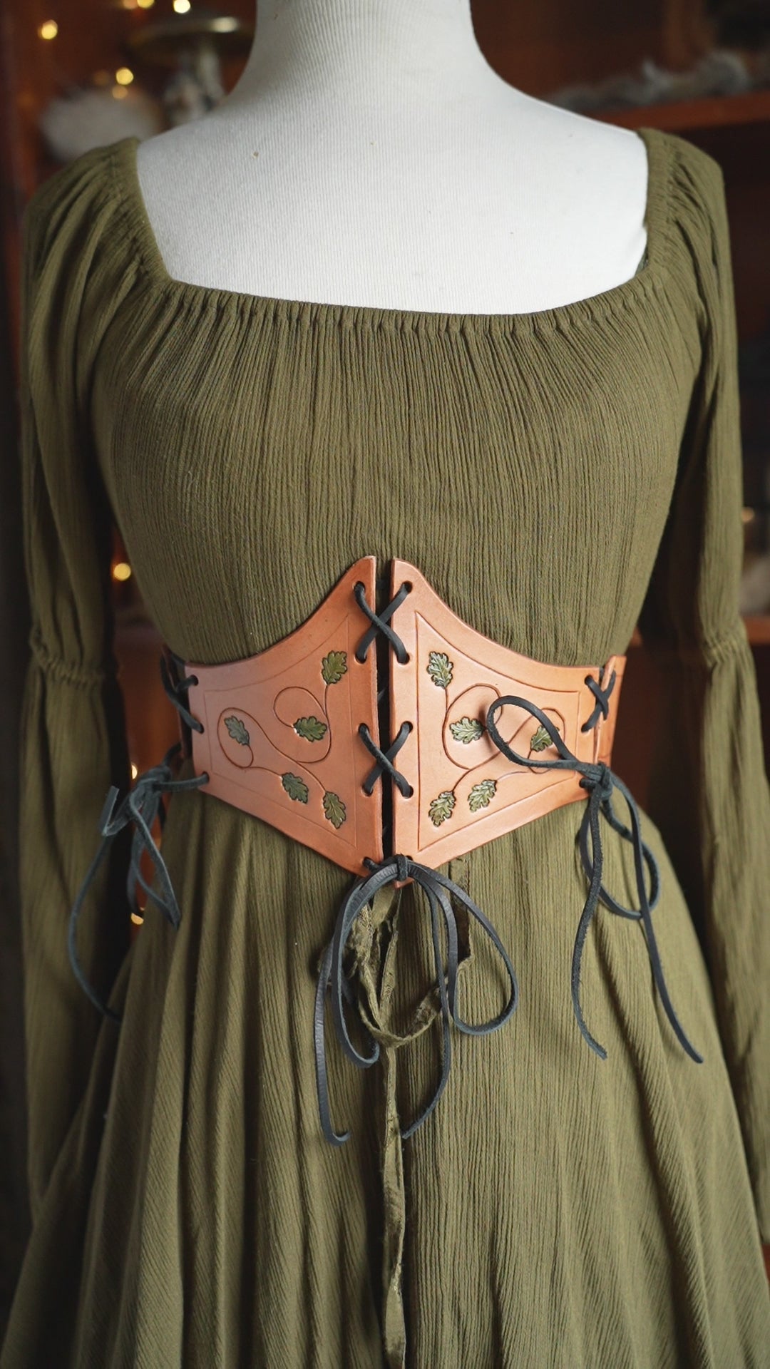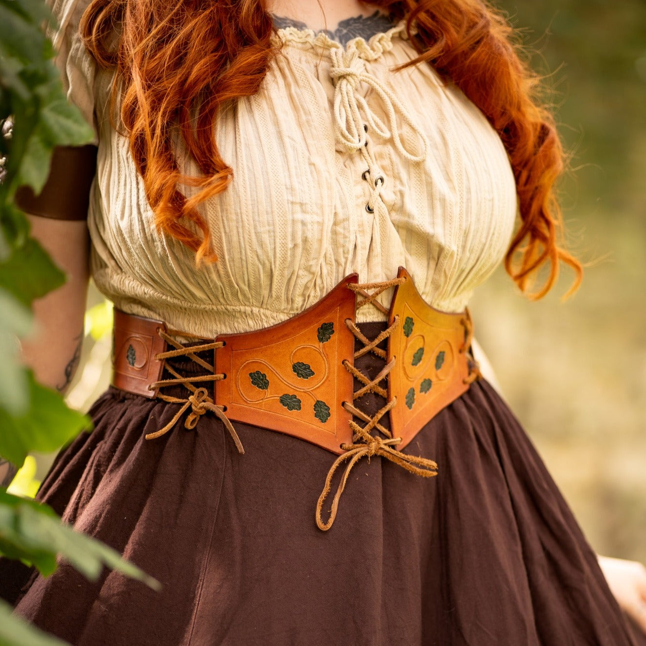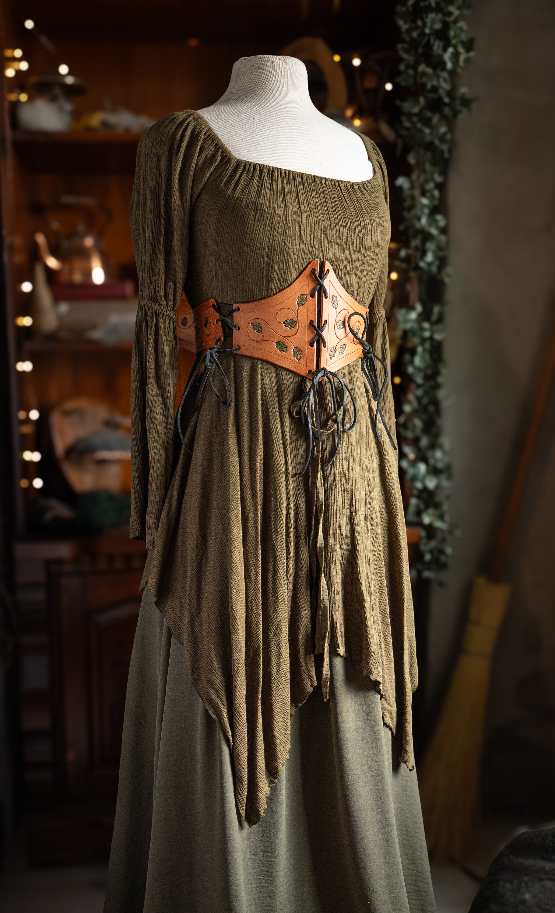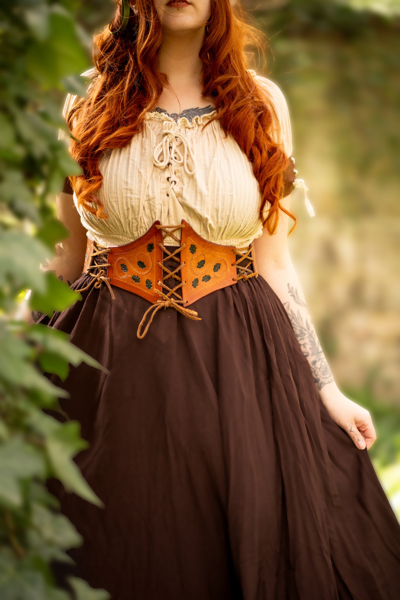 This cincher is perfect for cottagecore lovers! Instantly transform a chemise and skirt or a flowing shift into an adorable and elegant outfit, to wear to the harvest festival, apple picking, or even, dare we mention, on an adventure! Don't forget to come back again.