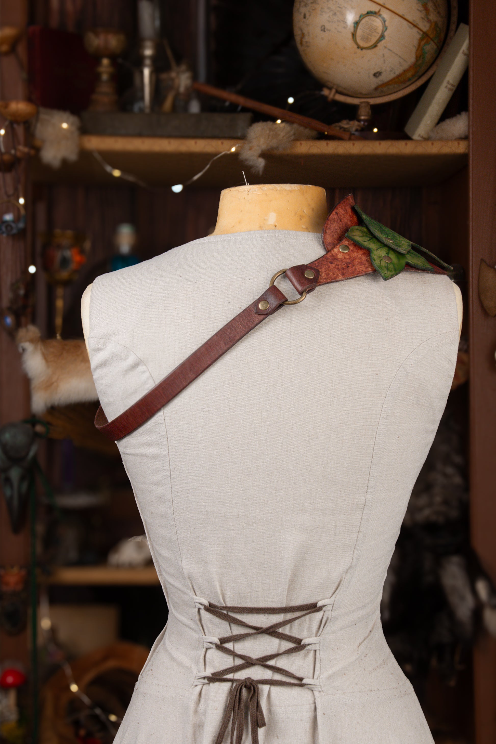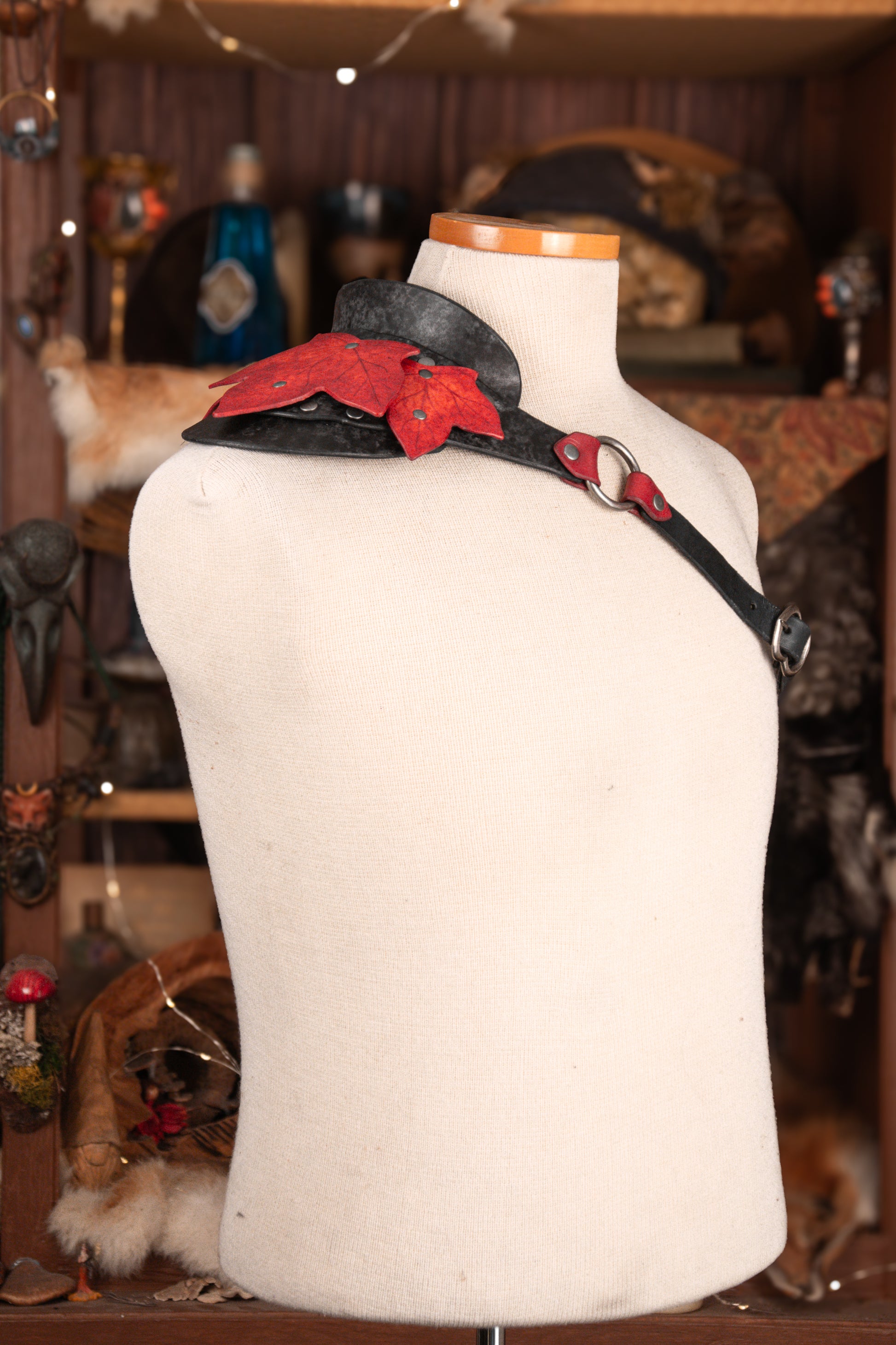 Small, stylish shoulder armor with straps across the chest, excellent for ranger or rogue looks. The two-shoulders is just two separate pieces, which can cross in the front over the chest and across the back.