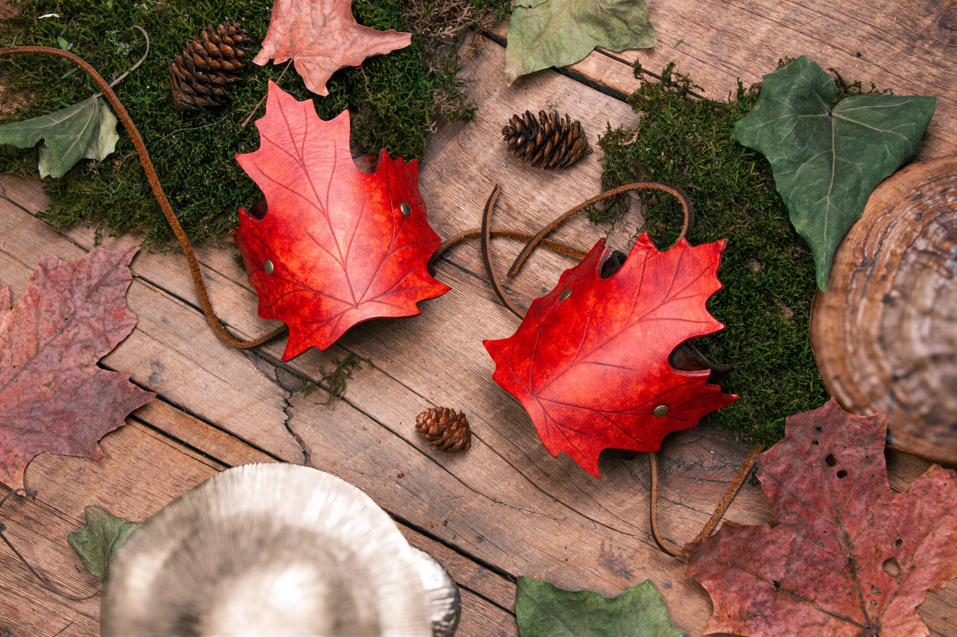 I got these cute cuffs as a set with a maple leaf corset for a fairy costume and I'm in awe of their cuteness. I feel like a forest dryad while wearing them and they even help my wrists to protect my tendonitis!