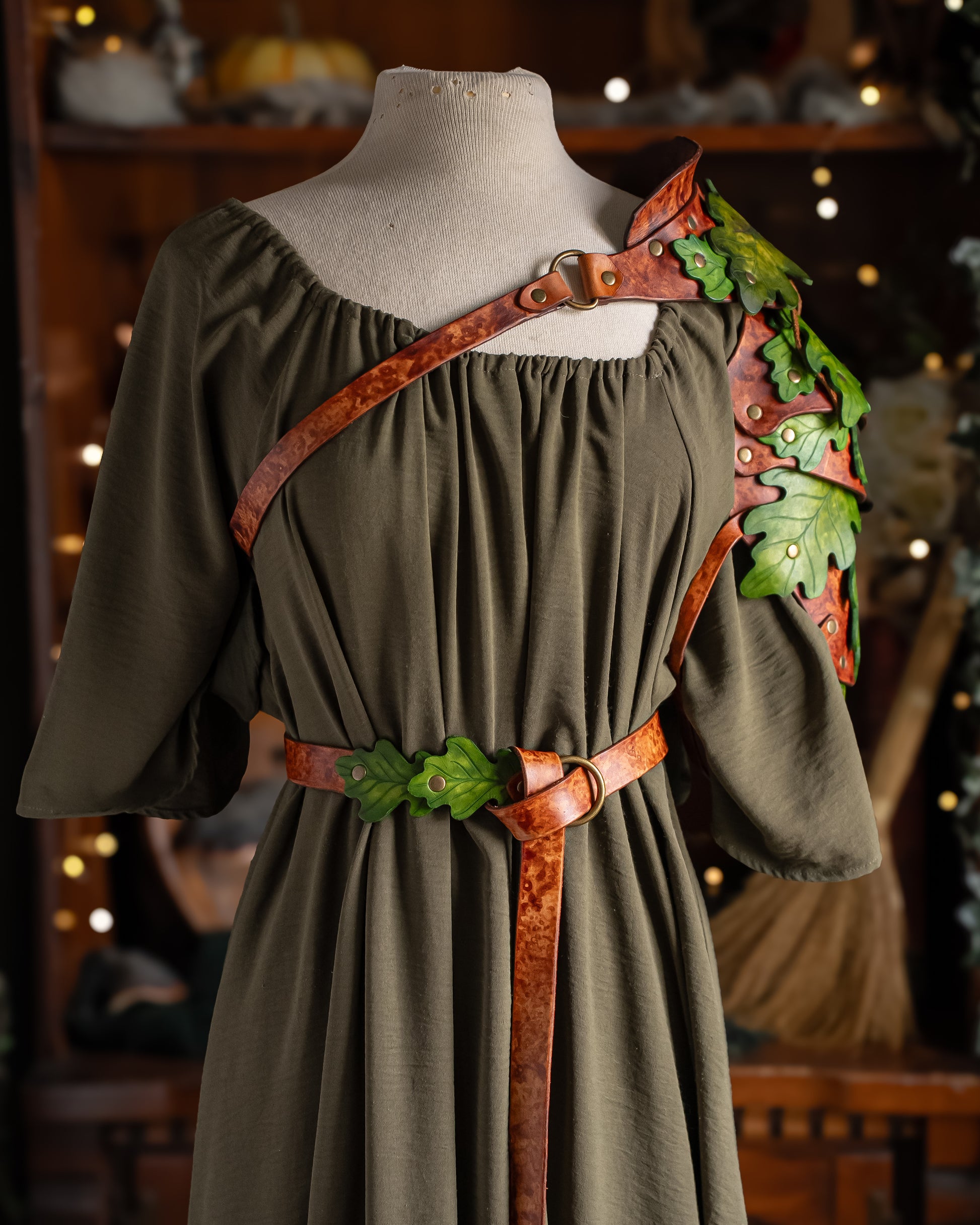 Small, stylish shoulder armor with straps across the chest, excellent for ranger or rogue looks. The two-shoulders is just two separate pieces, which can cross in the front over the chest and across the back.