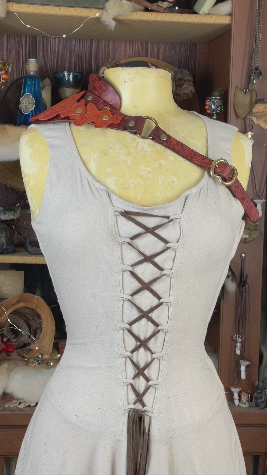 Made with 1/8in thick veg tan leather, metal buckles and rivets, and eco-friendly dye, this piece is lovingly crafted by hand and made to order. It will be in the post by the end of the month in which you have ordered. Production time can vary slightly month-to-month.