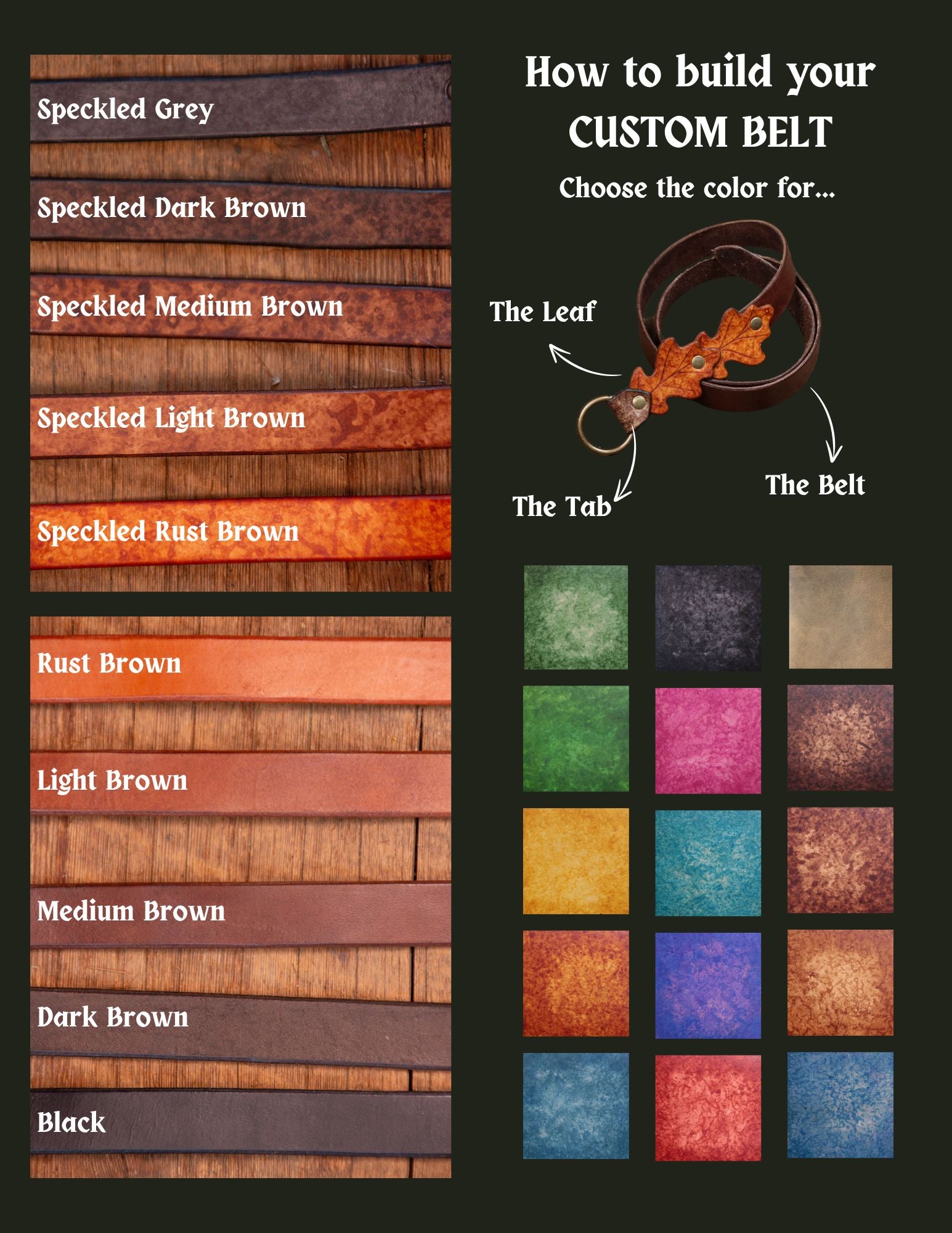 This belt comes with a blank end tip as standard, but you can add a leaf design to the end for a small additional cost.