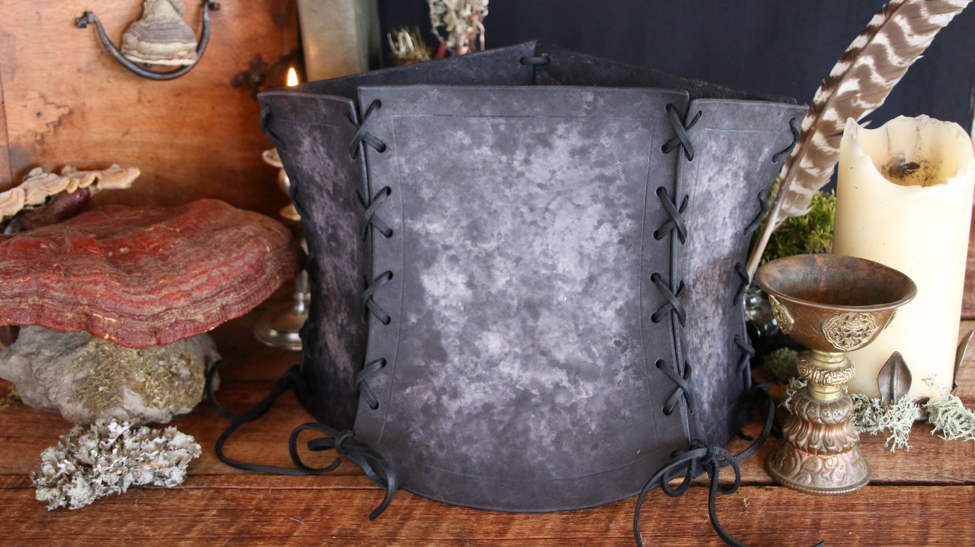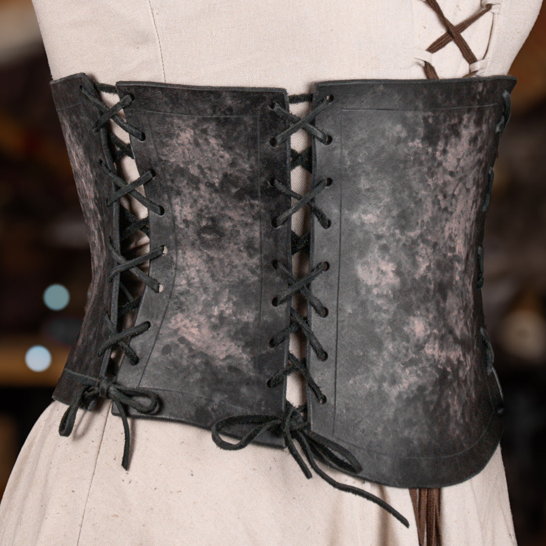 The laces between each panel make it very adjustable, and the thick leather gives a lot of support, without the need for any boning! Perfect for renaissance faires, medieval festivals, and LARPs.