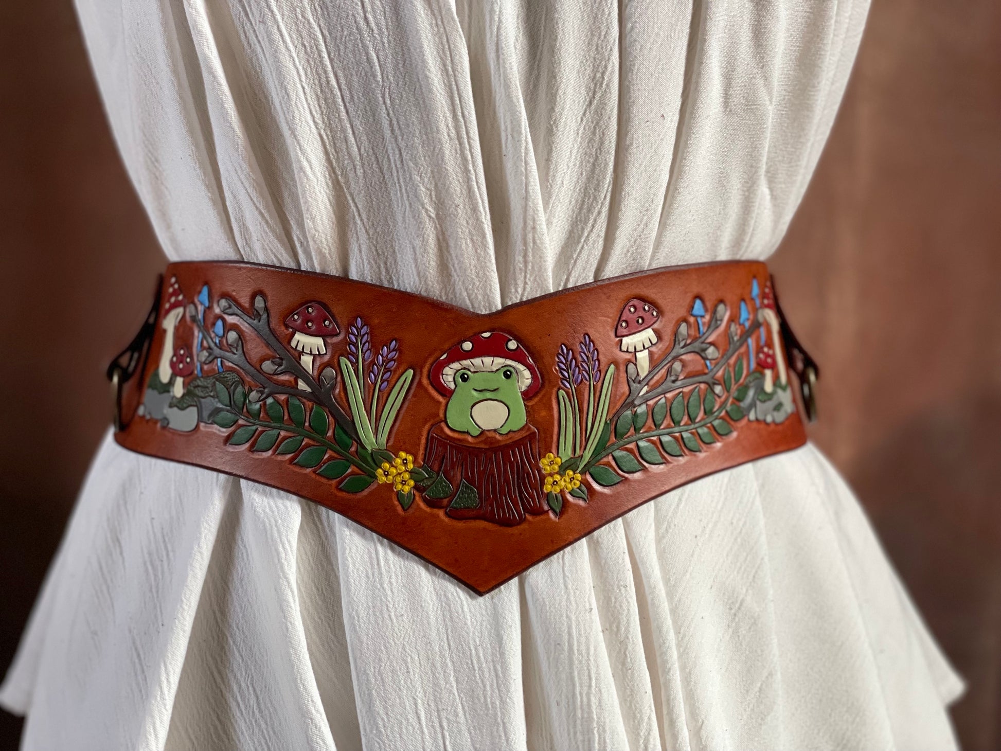 Made from sturdy, quarter inch thick veg tan leather, with a leather lace on the side, you can put it around your waist or your hips.